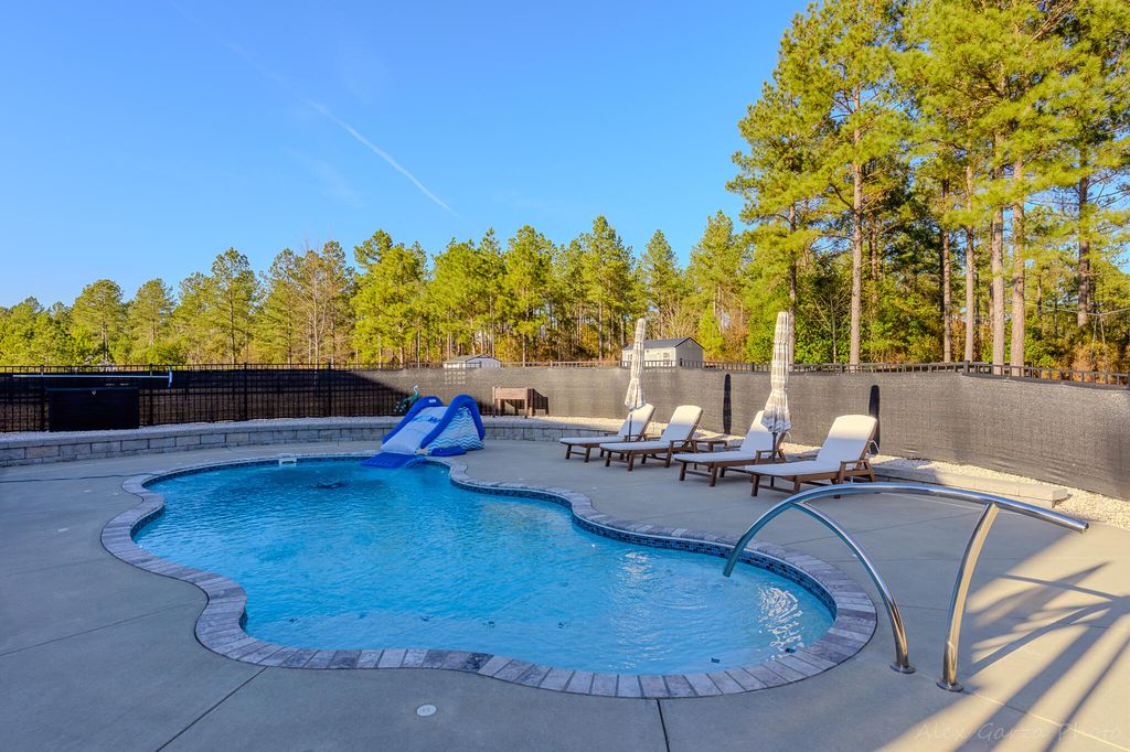 Gorgeous home loaded with high-end features on a 1.5-acre lot backing up to an additional 500-acre natural reserve. This beautifully appointed property showcases upscale finishes throughout, including hardwood floors, granite countertops, stylish lighting, custom tile work, heavy trim, and thoughtful details at every turn. This 4-bedroom, 3.5-bath home is wonderfully crafted for busy family living. The easy-step kitchen overlooks the spacious great room, creating the perfect central hub for everyday life and entertaining. Imagine summer days spent in your private backyard oasis, complete with an inground heated pool and peaceful wooded views. Enjoy seamless indoor-outdoor living with a screened-in porch ideal for outdoor gatherings, leading directly to the pool deck. A unique exterior water closet adds exceptional convenience for pool guests. The garage includes a workbench and built-ins that offers storage galore. Every detail of this home reflects comfort, functionality, and upscale design, all set against a serene natural backdrop. Nestled in a charming gated community, you'll enjoy the serenity of country living with the convenience to many local amenities.