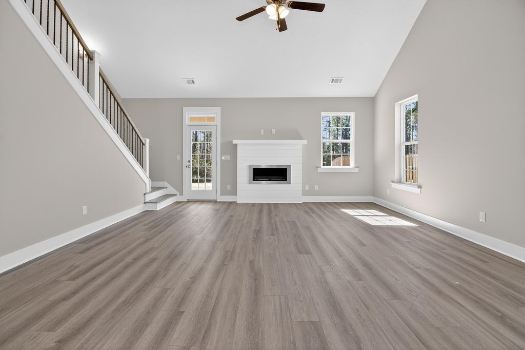 Welcome to this stunning 4-bedroom, 3-bathroom home by Tindall Construction offering a beautifully designed living space in the desirable Grovetown area. The open-concept layout features a modern kitchen equipped with stainless steel appliances, granite countertops, tile backsplash, under-cabinet lighting, and a spacious island"”perfect for entertaining and everyday living. Throughout the main living areas, you'll find durable and stylish Evacore waterproof LVP flooring and a sleek, contemporary fireplace that adds a warm, inviting touch. The main floor boasts an oversized Owner's Suite with private access to the covered back porch. The luxurious ensuite bathroom includes an oversized soaking tub, a separate tiled shower, dual vanities with lighted mirrors, and a large walk-in closet. The laundry room on main floor for added convenience. A guest bedroom and full bathroom are also located on the main level, ideal for visitors or multi-generational living. Upstairs, two additional bedrooms, a full bathroom, and a versatile loft space provide room for work, play, or relaxation. Located just minutes from Fort Gordon, I-20, and Grovetown's shopping and dining destinations, this home offers the perfect blend of comfort, style, and convenience. NOTE: Room sizes are approx. - please verify. Verify Schools with county.