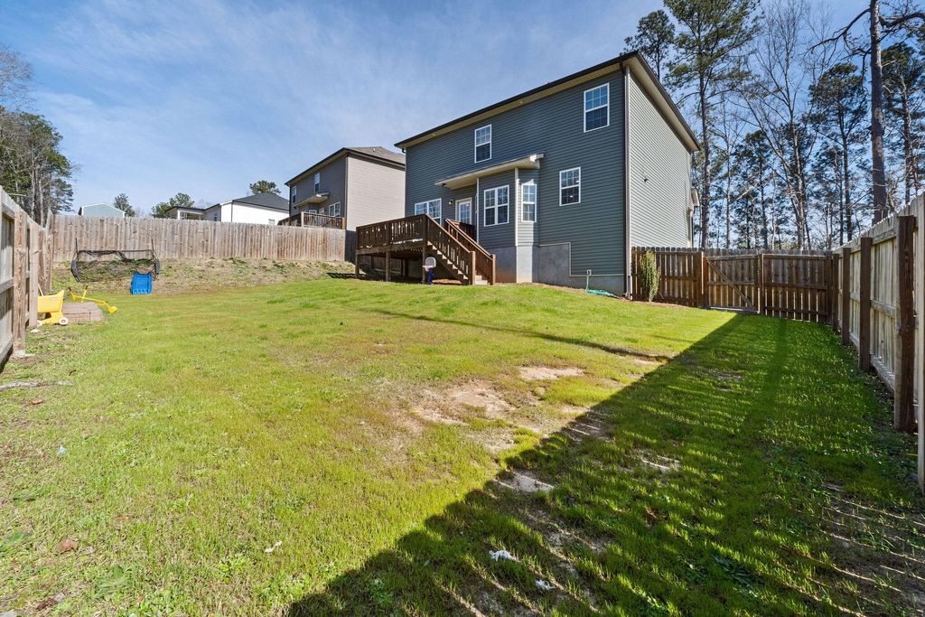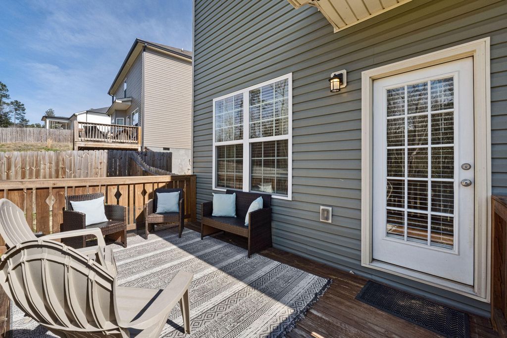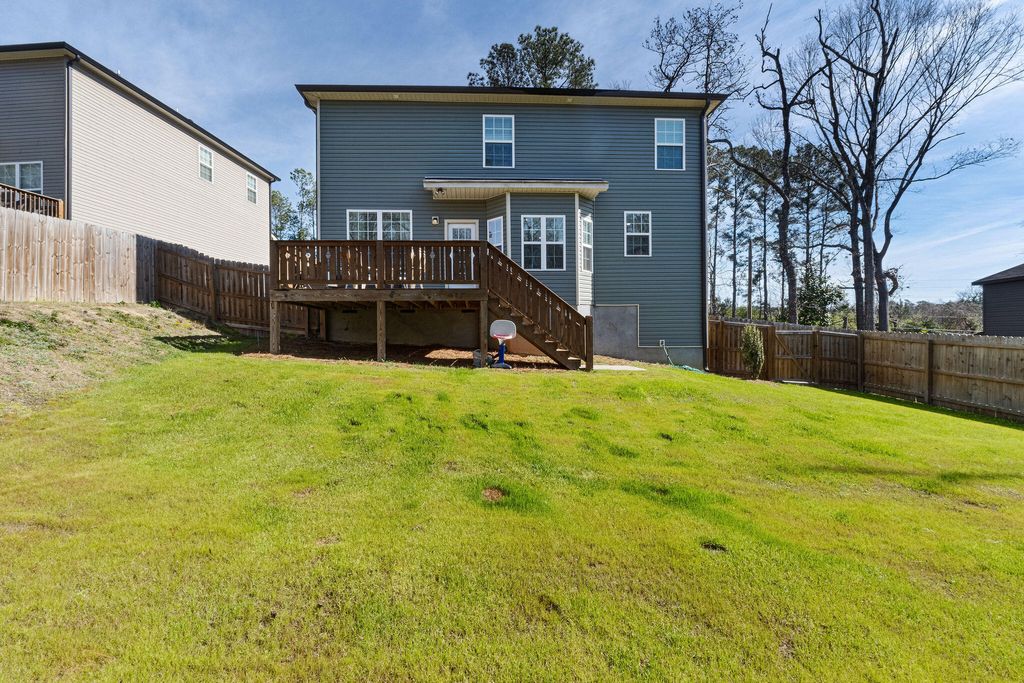 Looking for a like-new home with NO HOA! Check out this charming two-story home that was built in 2023. This home is situated on an oversized .62 acre lot and has a rocking chair front porch, open concept living, a rear deck, plus a privacy fenced backyard. The home provides ample living space with its open floor plan. The kitchen opens up to the great room where you'll find a beautiful accent wall. The kitchen is equipped with granite countertops, a pantry and stainless steel appliances that convey with the sale. On the upper level of the home you'll find the owner's suite and ensuite with a soaking tub and a walk-in shower, three additional bedrooms, a full bathroom, and a laundry room. A two-car attached garage with a shared entry drive is set up for parking and storage for tools and outdoor supplies. Outside, the backyard is a private, with mature trees outside the privacy fence. Enjoy a large lawn and the rear deck is the ideal gathering spot for entertaining and relaxing! It is conveniently located to North Augusta, Augusta, and Aiken.