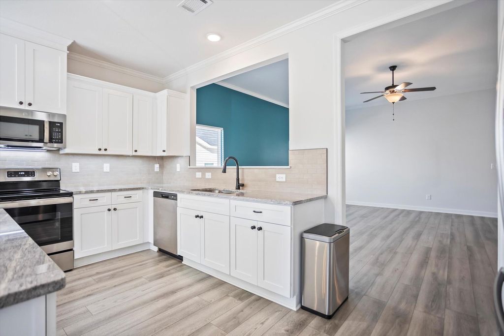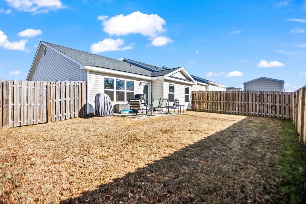 Welcome home to this beautifully maintained Bill Beazley end-unit townhome in the heart of Grovetown. This home sits near the end of a quiet cul de sac offering added privacy. The dream kitchen features stainless steel appliances, gorgeous granite countertops, pull-out cabinets drawers, upgraded lighting, and an island that also provides additional seating. The dining room area overlooks the fenced-in back yard creating the perfect space for entertaining guests or enjoying a peaceful meal with loved ones. All bedrooms have had the carpet removed and replaced with LVP flooring to match the rest of the home. The primary bedroom is a true sanctuary with a large bathroom with quartz countertops, walk-in shower, a soaking tub and walk-in closet. The end-unit location provides abundant natural light and the split-bedroom floor plan adds to the homes spacious and welcoming feel. Additional highlights include a state-of-the-art security system, energy-efficient building materials, and lightning-fast 1 gig fiber optic internet, ideal for streaming, working and everyday living. A spacious 2-car garage with attic storage in two separate areas offer plenty of room for vehicles and storage. The community features a pool for relaxing on warm summer days and meeting others in the community. The refrigerator and washer/dryer will remain, making this a truly move-in ready home!