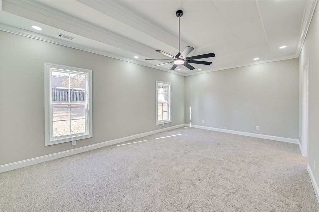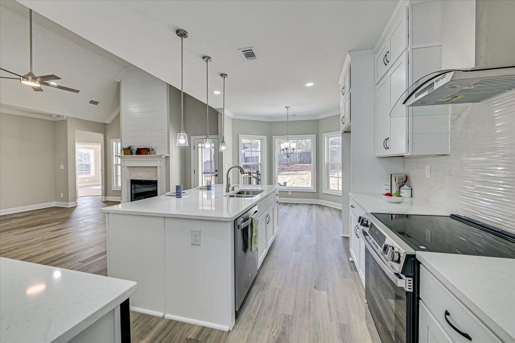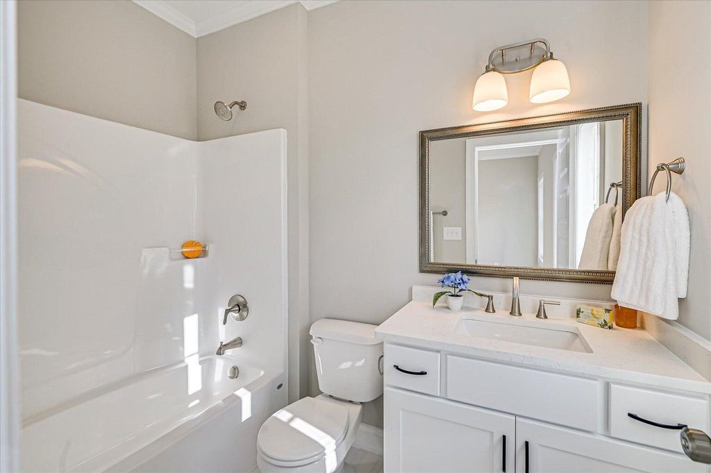 Back on Market at No Fault of Seller - Sale of Buyer's Home Fell Through! Beautiful newly constructed, timeless whitewashed brick & hardiplank home in sought-after Oak Creek in North Augusta. This well-designed 4 bedroom, 3 bath home offers exceptional livability and unparalleled convenience - just minutes to I-20, top-rated schools, shopping, restaurants, the Greenway, Brick Pond Park, Hammond's Ferry & SRP Park. This home is set on a knoll with a sweeping front porch from which to greet neighbors and guests. Step inside to find high ceilings, a neutral palette and a light-filled open floor plan. Rooms are accented with crown molding, wainscoting & select lighting. The entry foyer features a coat closet and great wall space for art or family photos. The dining room with an elegant tray ceiling is found through a wide-cased opening and is spacious to flex as a second living room, den or home office. Continue to the fabulous great room that impresses with a vaulted ceiling and an electric fireplace with fluted tile surround, quart hearth and shiplap accent wall. The great room opens to the kitchen, breakfast area and rear covered porch for easy, convivial daily coming & going and indoor/outdoor entertaining. You will love the standout kitchen's central island with elbow-room seating for 3; white shaker-style cabinets, matte black hardware, fluted tile back splash & stainless appliances, including a dishwasher, under-counter microwave & electric range with hood. The breakfast area has a 3-window bay overlooking the patio / grill space and freshly sod backyard. The split bedroom floor plan features a wonderful, primary retreat with a generously proportioned bedroom defined by a double tray ceiling, a walk-in closet + a classically appointed spa-style bath with jetted tub with privacy via a frosted picture window, tiled shower with glass enclosure, double vanity with quartz counters, WC & linen storage. Across the Great Room, three guest bedrooms enjoy privacy as well. One has a private vestibule, ensuite bath with quartz vanity & walk-in closet. Two additional guest bedrooms feature ceiling fans, double- door closets and share a hall bath with quartz countertop and tub/shower combination. Upstairs you will enjoy the flexibility of a lush carpeted bonus room with access to attic storage over the 2-car garage. A back hall offers a spacious pantry/storage closet and laundry room ready for finishing touches. Easy maintenance & quality construction features include insulated windows, LVP flooring, RainBird sprinkler system. Property has excellent rental potential for seasonal sporting events including The Masters and the Augusta National Women's Amateur. With lovely landscaping supported by irrigation - front & back, this home offers comfort, style and an unbeatable location and is ready to welcome the next owner!
