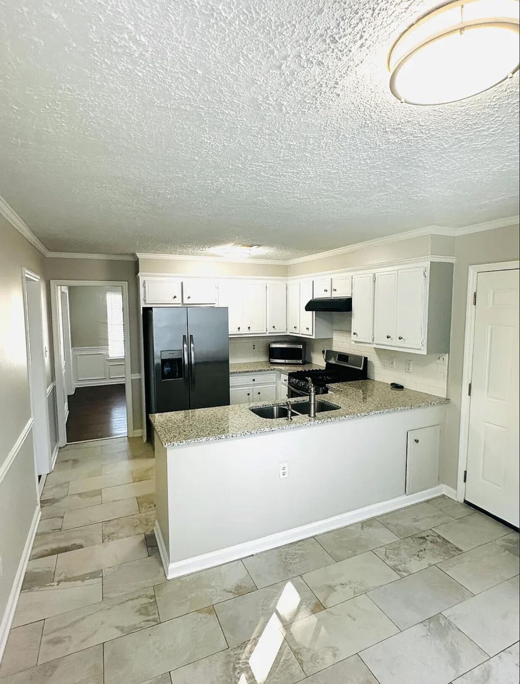 This charming home features 3 bedrooms and 2.5 baths, perfectly situated on a spacious, fenced corner lot. Upon entry, you are welcomed into a large great room highlighted by a cozy wood-burning fireplace, ideal for relaxing or entertaining. The formal dining room showcases elegant judge's paneling and Pergo flooring, adding timeless character to the home. The bright, eat-in kitchen has been beautifully updated with new ceramic tile flooring, granite countertops, freshly painted cabinets, new lighting, and updated hardware. Upstairs, the owner's suite offers a spa-like retreat with a new tiled shower, new tile flooring, Carrera marble countertops, and new carpet throughout the entire second level. Additional updates include a new garage door motor for the two-car garage, and the roof is just over five years old. The fully fenced backyard provides ample space for children to play and is perfect for grilling and outdoor entertaining. Conveniently located near Bobby Jones Expressway, Riverwatch Parkway, I-20, and close to schools, dining, and shopping, this home offers comfort, updates, and an excellent location.