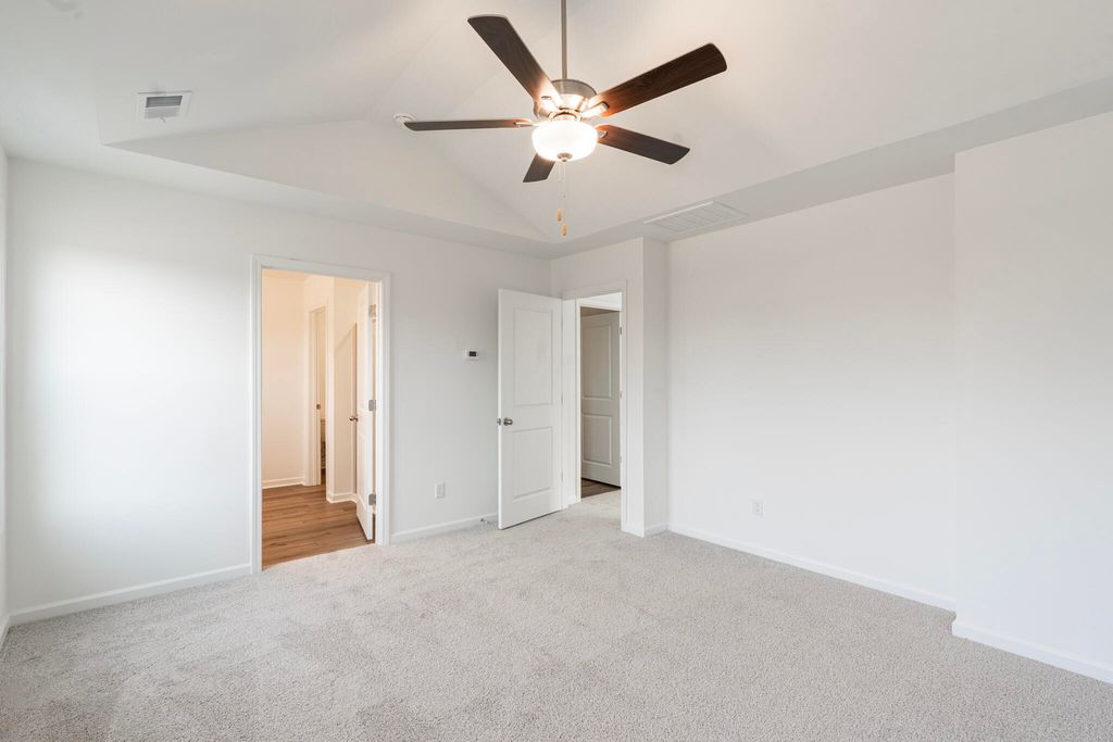 FIVE bedrooms, three full bathrooms, BRAND NEW, and UNDER 310,000"”the Benton II plan by the 2024 Builder of the Year, Great Southern Homes, has it all! 2045 April Dawn Trail is currently under construction and will be MOVE-IN READY in 30 days or less! The exterior features beautiful shades of green and beige, creating standout curb appeal. Inside, the main level offers a private bedroom with a full bathroom and closet"”perfect for guests or multi-generational living. The full-service kitchen is designed for both style and function, featuring stainless steel appliances, quartz countertops, a center island, and built-in Bluetooth speakers. It opens seamlessly to the spacious living room, complete with a cozy fireplace and mantel. Access to the covered patio is conveniently located in the living room. Upstairs, a large loft at the top of the stairs provides flexible space for a playroom, media room, or additional living area. The oversized owner's suite includes a luxurious en-suite bathroom with dual vanities, a walk-in shower, and a massive walk-in closet. Three additional generously sized bedrooms share a full bathroom with double vanities and a tub/shower combo. The laundry room"”the largest of all our floor plans"”is conveniently located just outside the owner's suite. The Benton II is the perfect blend of space, comfort, and modern design in a smart, functional layout. Our site team is available daily at the model home and happy to provide private tours. Come see why the Benton II is one of our best sellers! Ask about our special financing promotions and make this dream home yours at a GREAT price!