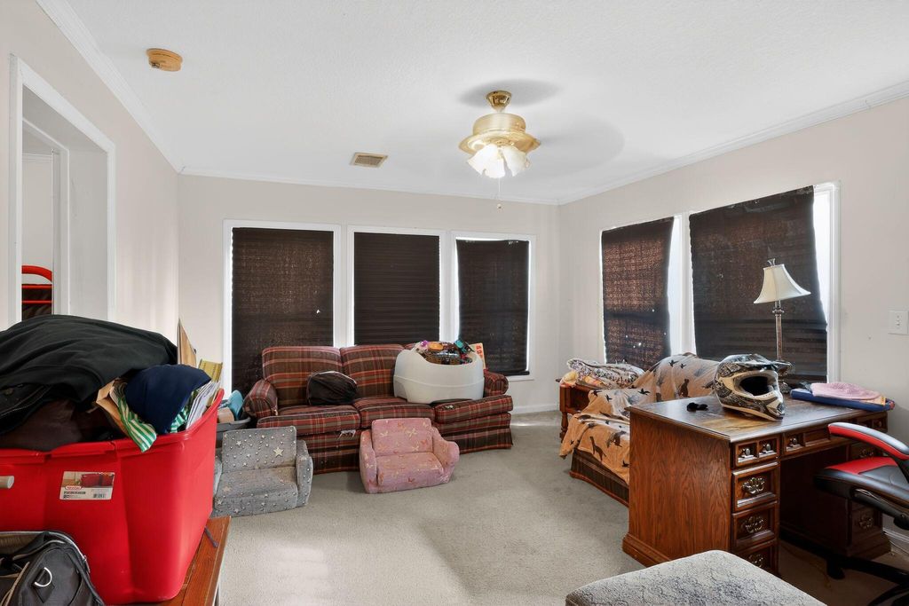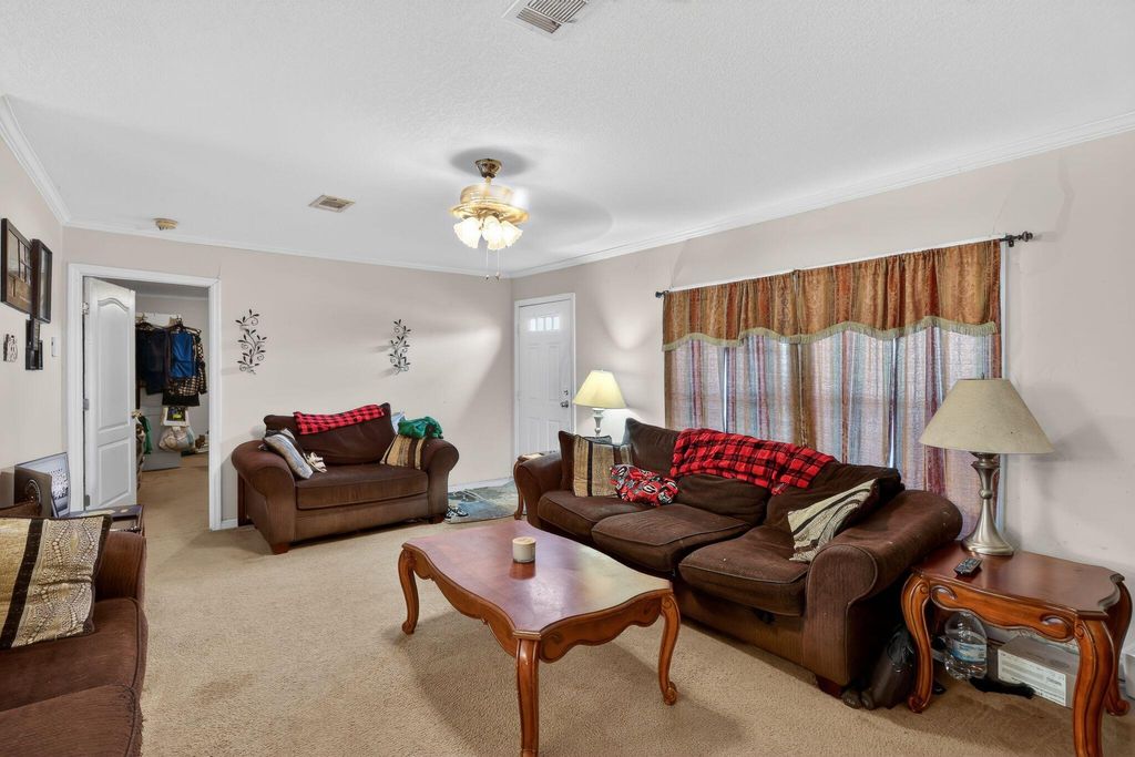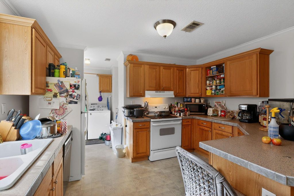 3BR/2BA ranch home offering approximately 1,512 heated square feet with a functional layout and eat-in kitchen. Features include vinyl siding, composition roof, electric range, and a raised rear deck. Property sold as-is.