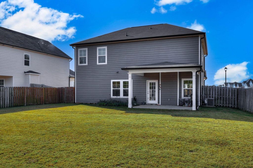 Great open layout on this traditional two-story home in a desirable Columbia County neighborhood with award-winning schools, just a few minutes from Fort Gordon. Four bedrooms, two full baths and a half bath. Greatroom has a fireplace, coffered ceilings and is open to dining area. A bright kitchen with stainless steel appliances, good cabinet and counter space, an island, granite counters, a breakfast area and large pantry. Fully fenced backyard is great place for kids to play and covered back porch offers a relaxing respite after a long day at work. The upstairs owner's suite gives privacy and en suite bath has soaking tub, separate shower and double vanities. One of the bedrooms could be a convenient office space and upstairs laundry saves time and steps. This is a perfect location for military or anyone who wants the convenience of a central location close to I-20.
