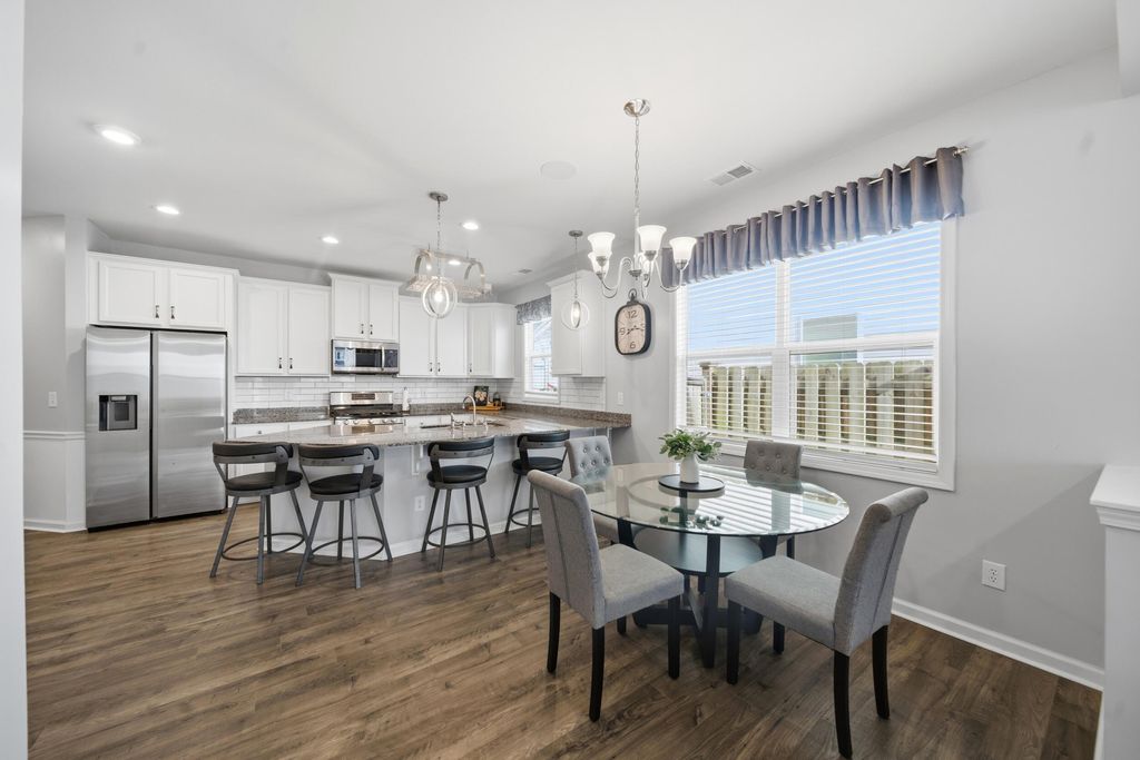 Start fresh in this gorgeous, like-new home built in 2021, located in the desirable Claireborne community with access to a pool, cabana, playground, and walkable sidewalks. Designed with an open layout, a private owner's suite on the main level, and a junior suite upstairs, this home offers a lifestyle centered around comfort, connection, and everyday ease. The kitchen flows seamlessly into the living and breakfast areas, creating a natural gathering space for family and friends, and is equipped with generous counter space and cabinet storage, granite countertops, a stylish backsplash, a pantry, a 5-burner gas range with convection, and a curved island with dual sinks. Luxury vinyl plank flooring throughout the main living areas adds both durability and style for everyday living. The main-level owner's suite serves as a relaxing retreat, offering a walk-in closet, tray ceilings, double vanity, garden tub, and walk-in shower"”perfect for unwinding at the end of the day. A convenient powder room on the main level adds comfort for guests. Upstairs, oak hardwood stairs with wrought-iron railing lead to a spacious loft ideal for a game room, media space, or casual lounge. The upper level also includes a laundry room and two additional bedrooms with large closets sharing a guest bath. Outdoor living truly shines with a thoughtfully upgraded covered patio featuring a ceiling fan, recessed lighting, tile flooring, and a misting system"”perfect for summer BBQs and effortless outdoor entertaining. The backyard also includes a shed with power and built-in storage, raised garden beds with drip irrigation, eight fruit trees, and a side dog run. With its ideal layout, finished outdoor spaces, and move-in-ready feel, this home delivers a lifestyle that's ready to enjoy from day one. Easy access to the Savannah River Site, Fort Eisenhower, Bridgestone, Downtown Aiken, Downtown Augusta, and North Augusta.