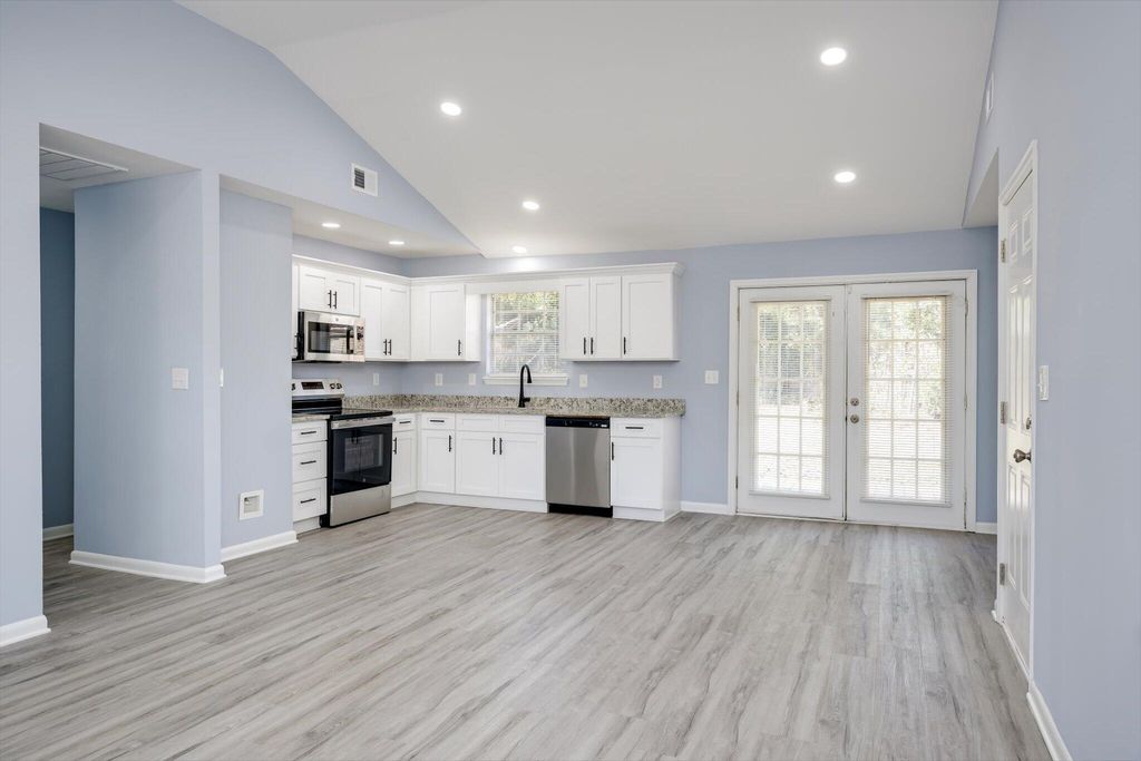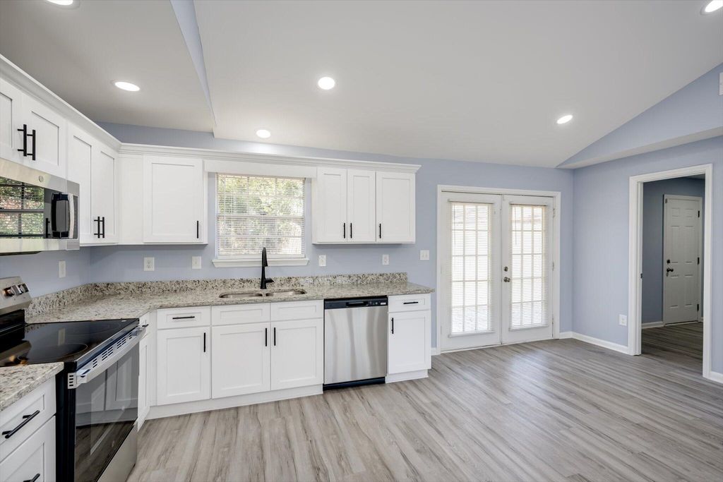 Fully updated 3 bedroom, 2 bathroom home in Norton Acres! Front door opens to a spacious living area with an open concept layout. New wood look flooring and fresh paint are through the entire home. The great room has an open feeling with vaulted ceiling and abundant natural lighting. Enjoy cooking in your new kitchen boasting new shaker style cabinets, stainless steel appliances and new countertops! The laundry room is a great size and provides additional pantry storage. The primary bedroom is around the corner with a private en suite bathroom that has been updated. Two additional bedrooms are similar in size and sit next to the second bathroom with a shower/tub combo. The backyard has a patio area off the backdoor. The yard is a great size and is fenced in. This home is close to numerous shopping and dining options along with easy interstate access. Schedule your showing today!