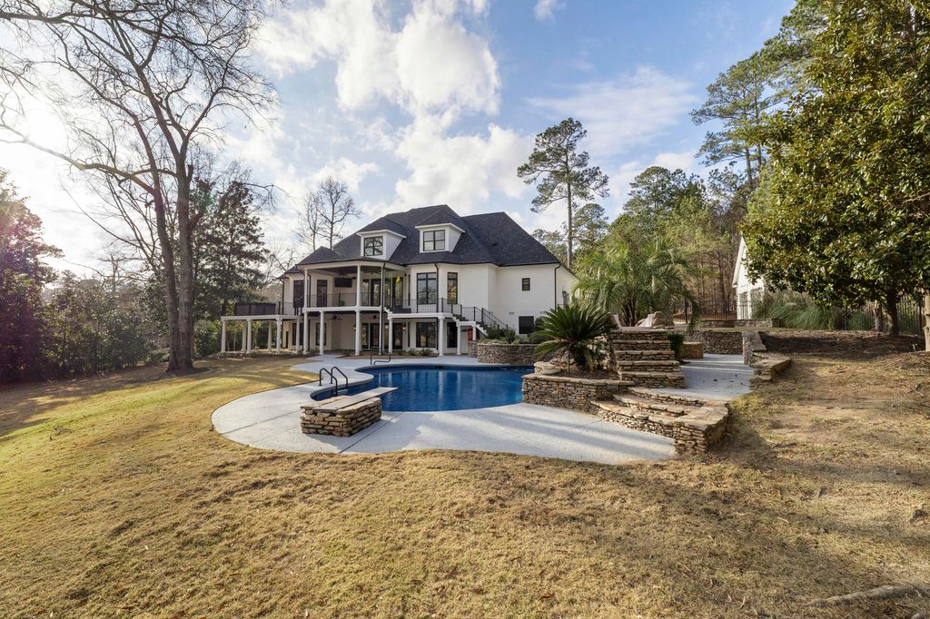 Welcome to an extraordinary luxury estate offering unmatched value on the largest lot in Riverwood Plantation. Situated on 3.61 private acres with serene pond views, this custom-built trophy property delivers an elevated living experience rarely found in Columbia County. The home showcases newly refinished hardwood floors throughout the main level, complemented by extensive custom molding, refined carpentry, and timeless brickwork"”every detail reflecting uncompromising quality and craftsmanship. The chef's kitchen is both elegant and functional, featuring granite countertops, two expansive islands, and luxury appliances including a Sub-Zero refrigerator, Thermador double ovens, and Viking microwave. Generously sized secondary bedrooms and a spa-like owner's retreat provide comfort and privacy, while the resort-style outdoor living spaces set this home apart. Enjoy a custom pool with waterfall, water slide, and diving board, viewed from a double deck ideal for refined al fresco dining and entertaining. Designed for a true luxury lifestyle, the home offers all-inclusive resort-style amenities including a spa, theater room, gym, bar, and game room"”creating a daily vacation experience. Additional features include two garages (three-car attached plus a detached garage ideal for boat or RV storage or a golf simulator) and unfinished upstairs space with endless potential for a studio apartment or in-law suite. Zoned for Greenbrier schools, previously utilized as a Masters rental, and located near Champions Retreat Golf Course, this better-than-new estate represents a rare opportunity to own an exceptional Riverwood Plantation property at an incredible value. Please verify square footage and room dimensions if important.