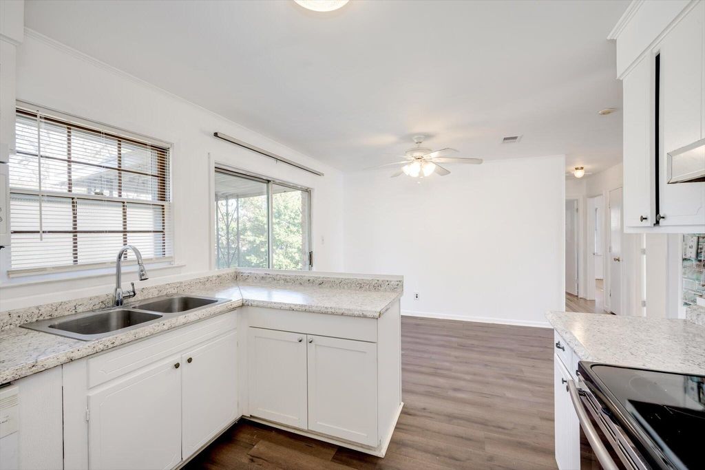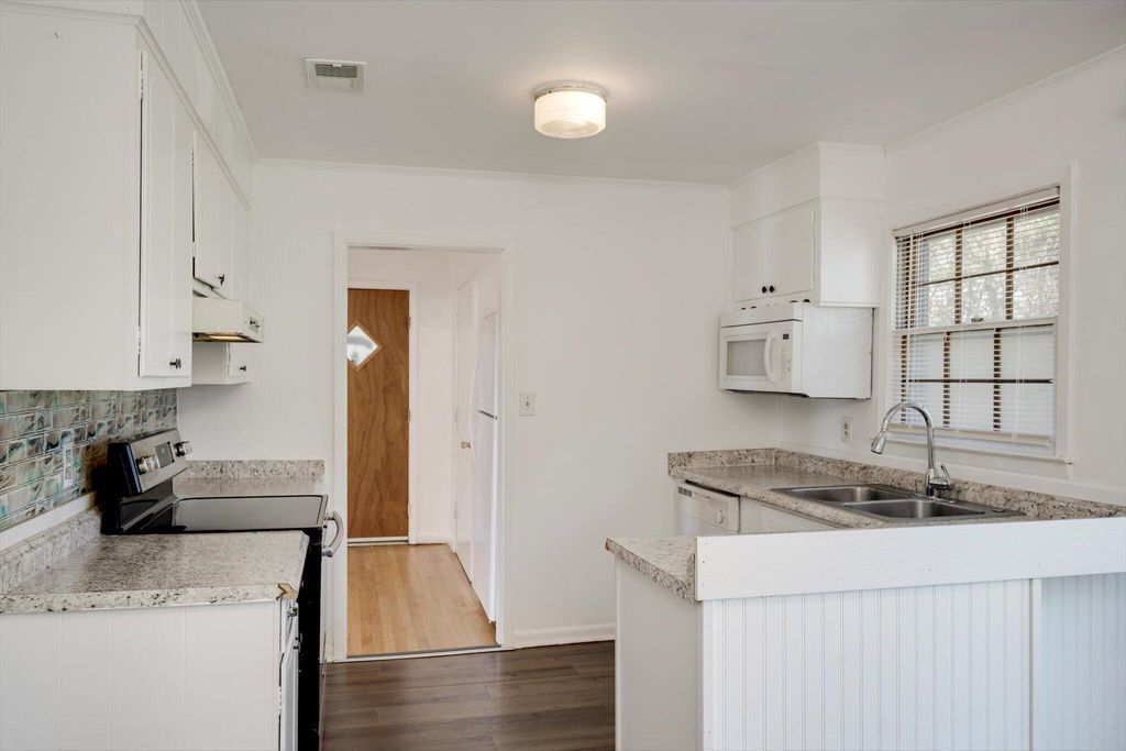 Amazing home for first time buyer or make a great addition to your rental portfolio. Low maintenance brick and vinyl siding exterior with fenced yard and 2 car carports. All new interior paint. Hardwood through the home. New HVAC, water heater, upgraded plumbing and electrical all done in 2021/2022. Large bathroom with tile flooring and double vanity. Refrigerator remains. Interior laundry room.