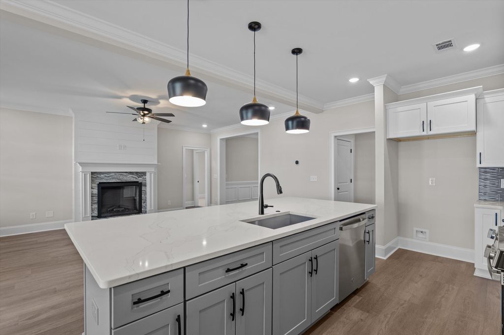 Welcome to your dream home with impeccable curb appeal, nestled in a tranquil neighborhood of Wrights Farm. This charming residence boasts a courtyard entrance, setting the tone for its inviting ambiance. Featuring 5 bedrooms and 4 full baths, this home offers living with modern comforts. Step into the heart of the home, where the kitchen stands as a focal point, adorned with granite countertops, a stylish tile backsplash, and a generous island, perfect for culinary adventures and casual dining. A generous pantry included. The open concept living area provides seamless flow, ideal for entertaining guests or enjoying family time. The split floorplan ensures privacy, with a private owner's suite offering a sanctuary of comfort. Retreat to the expansive owner's bathroom, complete with a full tile shower, separate tub, toilet closet, and double vanities with granite countertops, elevating your daily routine to a spa-like experience. A spacious downstairs laundry room for convenience. Upstairs you'll find 2 additional bedrooms and 2 full bath along with a versatile loft space. Outside, revel in the expansive yard, offering ample space for outdoor activities and relaxation. Take advantage of the covered front and back porches, where you can unwind and enjoy the serene surroundings. The meticulously landscaped yard, complemented by a sprinkler system, adds to the allure of outdoor living. Additional features include 30-year architectural shingles, ensuring durability and longevity for years to come. Don't miss the opportunity to make this stunning residence your own, where every detail has been thoughtfully designed for comfort and elegance. If schools are important, please verify with county. Room sizes are approx. - if important - please verify.
