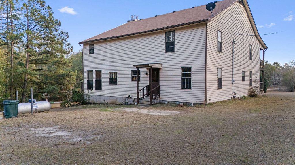 #MustSee A charming and spacious home that blends warmth, character, and functionality. This inviting property features two expansive rocking chair front porches (44x8), perfect for relaxing and enjoying the peaceful surroundings. Step inside to a welcoming 10x10 foyer showcasing beautiful heart of pine hardwood floors. The large great room offers plenty of space for gathering and entertaining, with direct access to a side wood deck (10x35) that is ideal for outdoor dining or enjoying nature. Additional main-level living spaces include a sunroom filled with natural light and a dedicated office, perfect for working from home. The kitchen is designed with character and practicality in mind, featuring a large center island, propane cooktop stove, and pine wood cabinetry, providing ample storage and workspace. A half bath with a single vanity sink is conveniently located on the main level. Also on the main floor is a bedroom that can serve as a second primary suite, offering flexibility for guests or multi-generational living. Upstairs, true hardwood stair treads lead you to the private primary suite, complete with a cozy wood-burning stove that adds warmth and charm. The primary bath is a relaxing retreat with dual vanity sinks, a custom tiled shower, and a jetted garden soaker tub. With its inviting porches, thoughtful layout, and rustic elegance, this Hephzibah home offers comfort, character, and versatility that is perfect for those seeking a unique and welcoming place to call home.