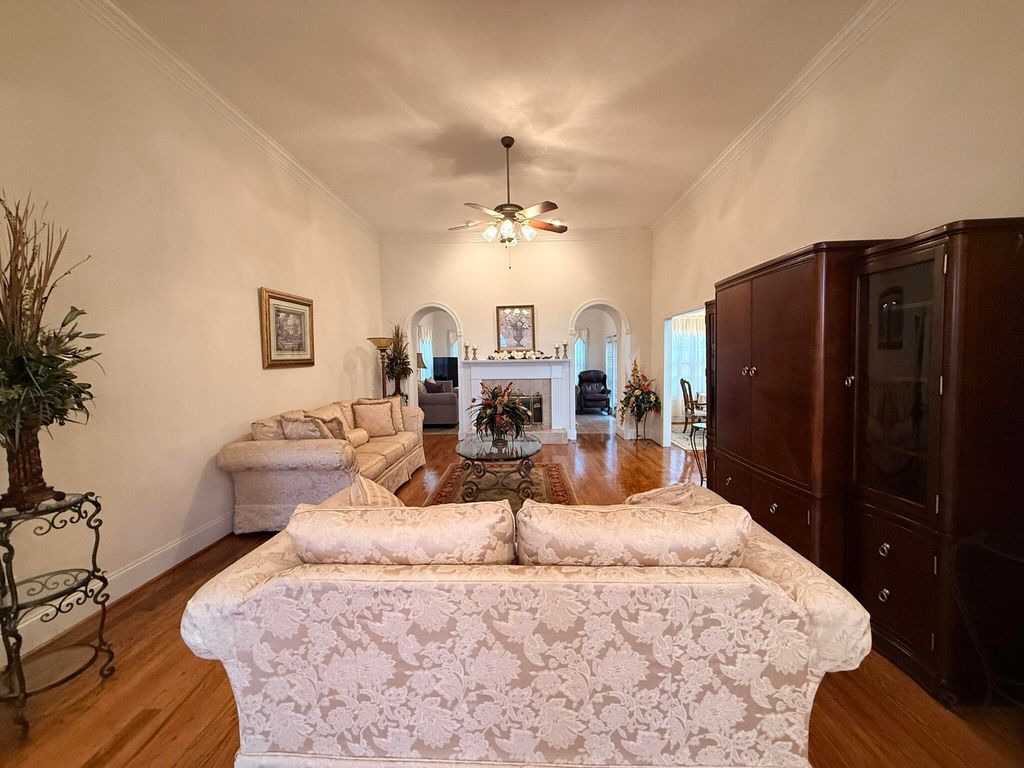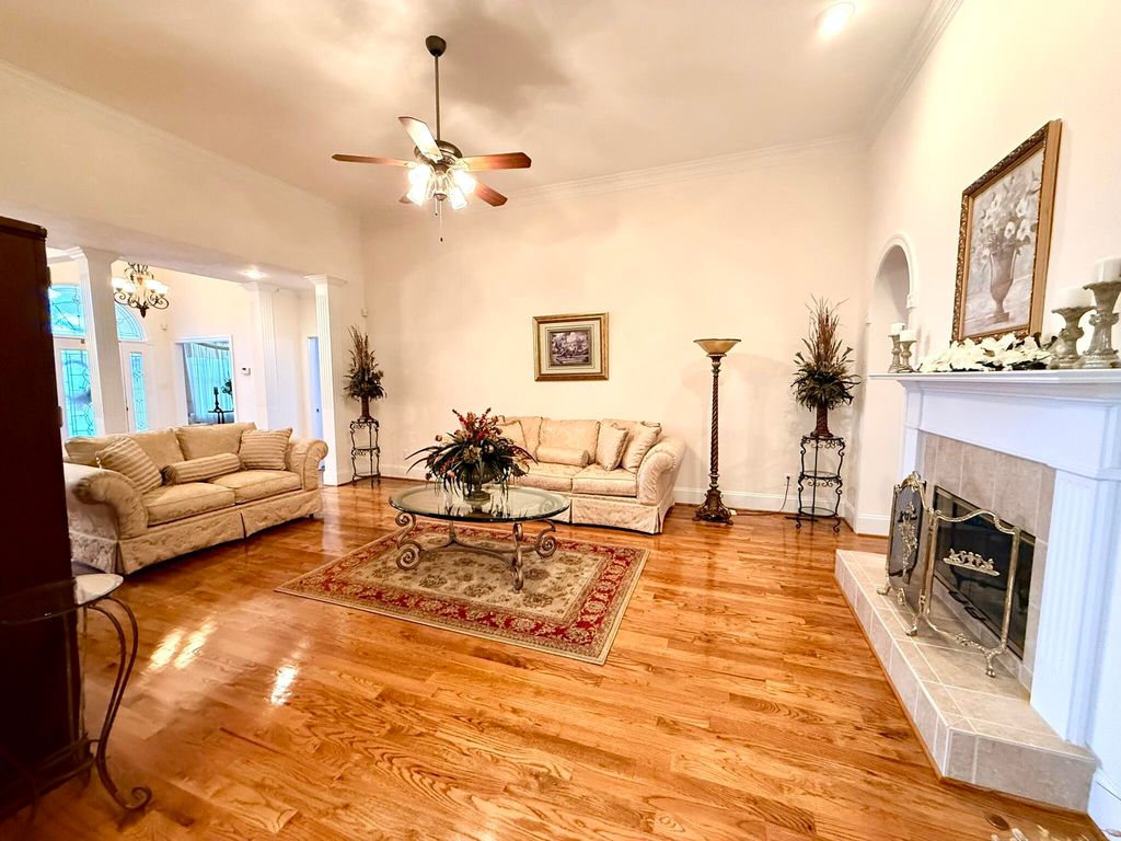 The Jamie II plan by Bartley Homes is a beautiful all brick home on a corner lot. Hardwood floors throughout the main living area. Formal living room with vaulted ceiling. Formal dining room with 12' ceilings, judges paneling and crown molding. Great room with double sided/see-thru fireplace into heated and cooled sunroom with arched doorways and 12' ceilings. Owner's suite on the main level with his and her closets and tray ceiling with owner's bath with jacuzzi tub, separate shower and water closet. Half bath with pedestal sink and tile floor. Kitchen boasts granite counters, lots of cabinets, stainless steel appliances to include a gas cooktop and wall oven. Breakfast room with tray ceiling and chair molding. Laundry room has tile floors, cabinets and a utility sink and leads to the side entry garage. Two additional bedrooms on the main floor; one with hardwood floors and a walk-in closet, the other with carpet and a walk-in closet. Fans in all bedrooms. Second full bath with double sinks and an elongated toilet. Hardwood stairs tucked in the back of the house lead to the second level where you will find two additional bedrooms and a full bathroom. Storage closet with 30' of flooring. Small loft perfect for office space. New architectural roof in 2024 and two new HVAC systems in 2024. Trex deck and large patio. Epoxy resin flooring in two-car side entry garage.