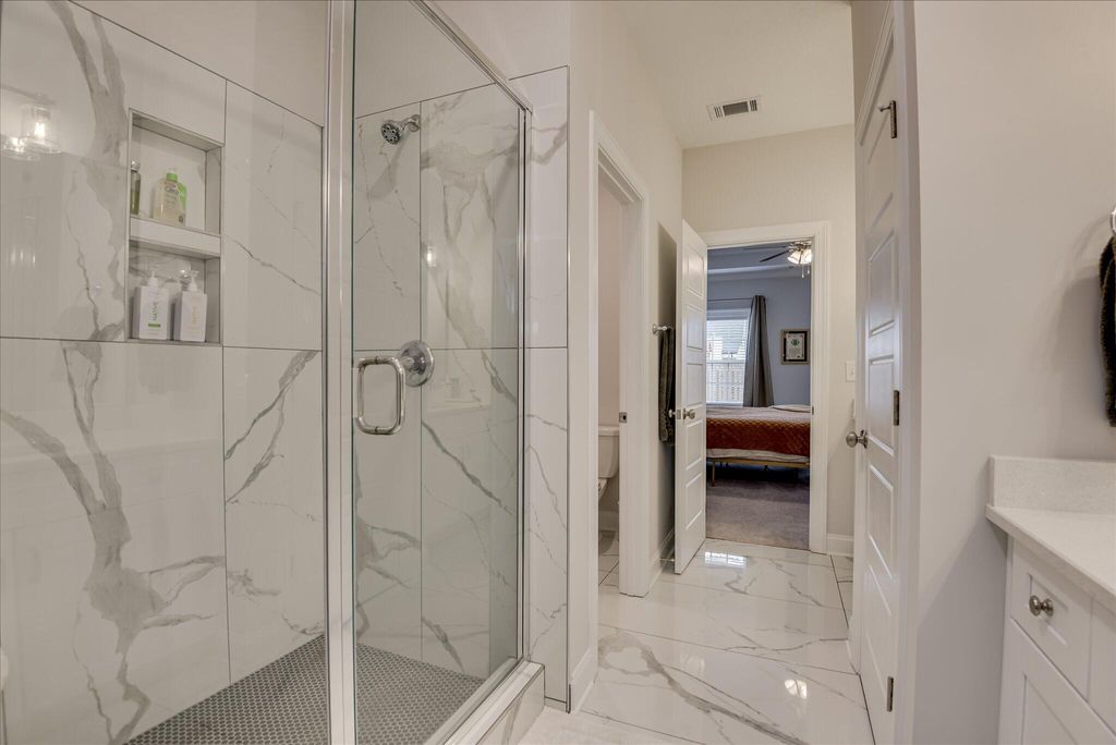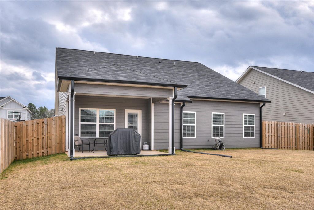 This home is immaculate and has been exceptionally well cared for. Beautifully maintained Bondi III plan built by locally owned Designer Homes of Georgia, located in the desirable Sanctuary subdivision in Aiken, SC. This thoughtfully designed two-story home offers 5 bedrooms and 3 full bathrooms on a .18-acre lot with an open and functional layout. The main level features a spacious living area open to a well-appointed kitchen complete with granite countertops, tiled backsplash, stainless steel appliances, and ample cabinetry. The owner's suite is conveniently located on the main level and includes an en-suite bathroom with dual vanities and a tiled walk-in shower. Two additional bedrooms and a full bathroom are also located on the main floor, offering flexible living or guest space. Upstairs, you'll find two more generously sized bedrooms and a full bathroom, ideal for additional family members, guests, or home office options. Outdoor living is enhanced by a covered patio and fenced backyard, perfect for relaxing or entertaining. The Sanctuary community offers sidewalks, streetlights, a large community garden, and a neighborhood walking trail. Conveniently located just minutes from Downtown Aiken, Bruce's Field, Hitchcock Woods, equestrian venues, shopping, and dining.