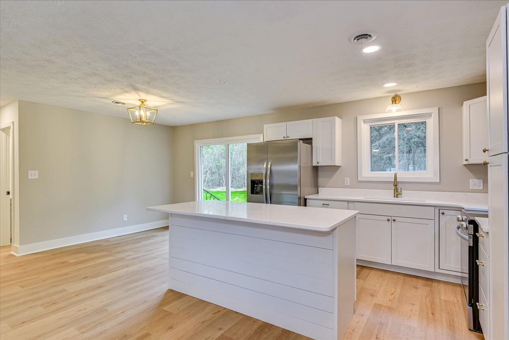 Welcome to this beautifully renovated brick ranch, perfectly situated on a nearly 5 acre lot that offers both privacy and room to breathe. A covered front porch invites you inside, where you're greeted by wide-open living spaces bathed in natural light. The spacious family room features luxury vinyl plank flooring flowing seamlessly throughout the entire home. At the heart of the home lies a gorgeous chef's kitchen boasting all-new cabinetry, stainless steel appliances, gleaming quartz countertops, a generous bar with seating, and a sunlit breakfast area overlooking the large backyard. This thoughtfully designed home offers four bedrooms, each with ample closet space. The primary and secondary baths have both been completely updated with designer finishes, including modern vanities, framed mirrors, stylish fixtures, and sophisticated tilework. Additional features include a new roof, new windows, new plumbing, new vinyl siding, new interior and exterior doors, garage, ample parking space & so much more.