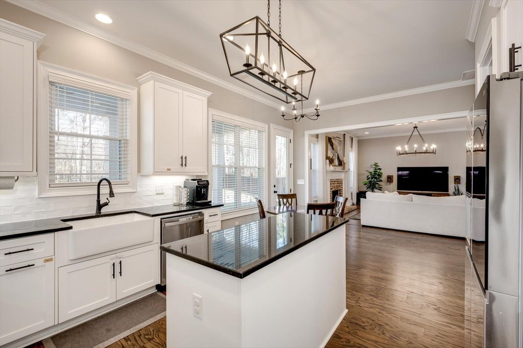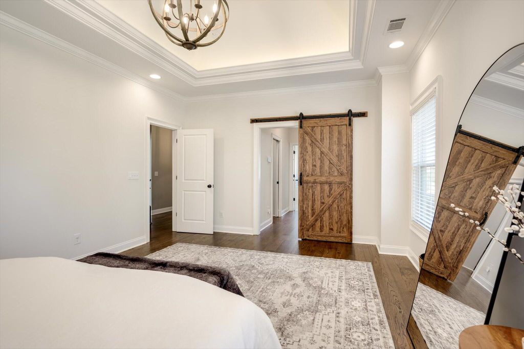 Better than new construction! This 6-bedroom home, completed in 2022, sits on one of the most desirable lots in the River Oaks neighborhood. The large, flat 0.37-acre lot backs up to a wooded area and offers privacy on all sides. The location is especially convenient within Columbia County's Greenbriar High School zone"”just off Hardy McManus Road, minutes from Riverwood Town Center and top-rated schools, while benefiting from reduced traffic and multiple commuting routes between major thoroughfares. The sellers have completed numerous upgrades, including updated lighting, a 240V EV charging outlet in the garage, a privacy fence, full-perimeter gutters, window blinds, and hardwood flooring in the primary suite, upstairs hallway, and largest secondary bedroom. The home also boasts a strong Master's rental history due to its upgrades, layout, and location. A covered front porch leads into the foyer, featuring a statement chandelier, with a dedicated office on one side and a flex room (currently used as a playroom) on the other, complete with a coffered ceiling and wainscoting. Just beyond are the staircase and a hallway leading to a spacious guest bedroom with ensuite access to a full bathroom and a linen closet, making it ideal for guests, in-laws, or multigenerational living. A tankless water heater ensures hot water on demand for guests. Overlooking the backyard, the open concept living room, kitchen, and breakfast area create a functional and inviting main living space. The living room includes accent lighting and a fireplace, providing a comfortable gathering area. The kitchen is well-appointed with upgraded stainless-steel appliances, including a French-door refrigerator, 8-burner gas range with double ovens, dishwasher, deep sink, and walk-in pantry. Granite countertops, a large island, and ample cabinetry offer generous storage and workspace, along with an additional storage closet in the hallway connecting the kitchen and flex room and access to the garage. Upstairs, the home offers a primary suite, 4 additional bedrooms, 2 guest bathrooms, and a laundry room. The primary suite features a tray ceiling with hidden accent lighting. A private hallway connecting to the ensuite bathroom includes 2 separate walk-in closets with custom wood shelving. The bathroom offers dual vanities, a garden tub, walk-in shower, separate water closet, and direct access to the laundry room. Two front-facing bedrooms share a Jack-and-Jill bathroom with the vanity area separated from the tub and shower. The corner bedroom has a walk-in closet with custom shelving and additional attic storage on both sides. The other bedroom is the largest in the home, and features a vaulted ceiling, abundant natural light, a reach-in closet with wood shelving, and is currently used as a home gym. The remaining 2 bedrooms share the 4th hall bath. The attic is accessible via pull-down stairs and is partially floored with tall ceilings, adding even more storage space. Outside, a covered patio with ceiling fan overlooks the peaceful backyard, providing an ideal space for outdoor dining and entertaining. The flat yard offers ample room for future improvements. Wood fencing on two sides enhances privacy, while wrought iron fencing along the back maintains open views of the wooded backdrop. Located in one of Columbia County's most sought-after areas, this home is minutes from Clarks Hill Lake, Riverwood Town Center, parks, and the Betty's Branch boat launch, with an easy commute to Fort Eisenhower, the U.S. Army Cyber Center, Augusta University, the Medical District, and major employers including Club Car, Amazon, and John Deere. The property offers a rare combination of a wonderful lot, thoughtful upgrades, and a highly convenient location in Evans.