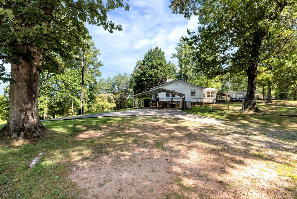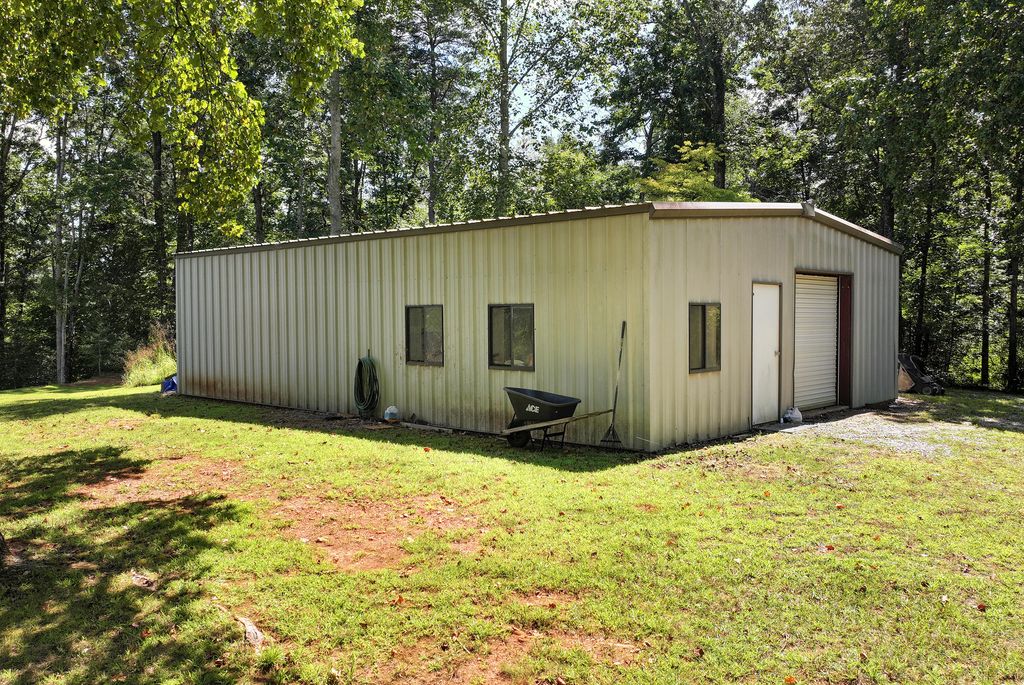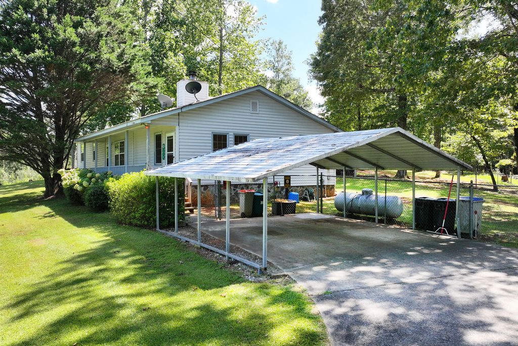This private mountain retreat in the heart of Cleveland, Georgia has been thoughtfully refreshed with new interior paint throughout, new flooring in all bedrooms and the office, a freshly painted front porch, and new paint in the guest house, making it truly move-in ready. Set on a wooded lot with beautiful mountain views, this 3-bedroom, 2-bath ranch-style home offers the perfect blend of comfort, versatility, and privacy. Start your mornings on the covered front porch overlooking the mountains, then cozy up by the wood-burning fireplace on cool North Georgia evenings. Inside, the spacious kitchen features abundant counter space and a center island that flows seamlessly into the dining area, while a separate living room, sunroom, bonus room, and dedicated laundry room provide flexibility for everyday living or entertaining. The primary suite serves as a peaceful retreat with its own private bath. Step outside to relax and unwind on the back porch with a jacuzzi tub, enjoy the back deck, or take advantage of the fenced backyard surrounded by serene natural landscaping. One of the standout features of this property is the separate guest house, freshly painted and full of potential. Whether you're looking for short- or long-term rental income, a private space for guests, a home office, or a creative studio, this guest house adds exceptional value and versatility. Equally impressive is the 40x30 metal garage/shop with an attached 18.5x11 office, ideal for a workshop, small business, hobbies, equipment storage, or additional workspace, an increasingly rare and highly sought-after feature. Located just minutes from downtown Cleveland, you'll enjoy easy access to the local farmers market, charming shops, and community events, while remaining close to the Blue Ridge Mountains, wineries, hiking, and outdoor adventures. With recent updates, income potential, and incredible functional space, this property offers privacy, opportunity, and North Georgia charm all in one.