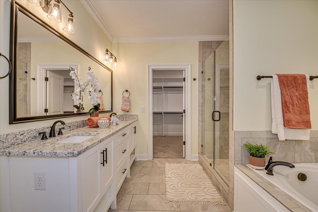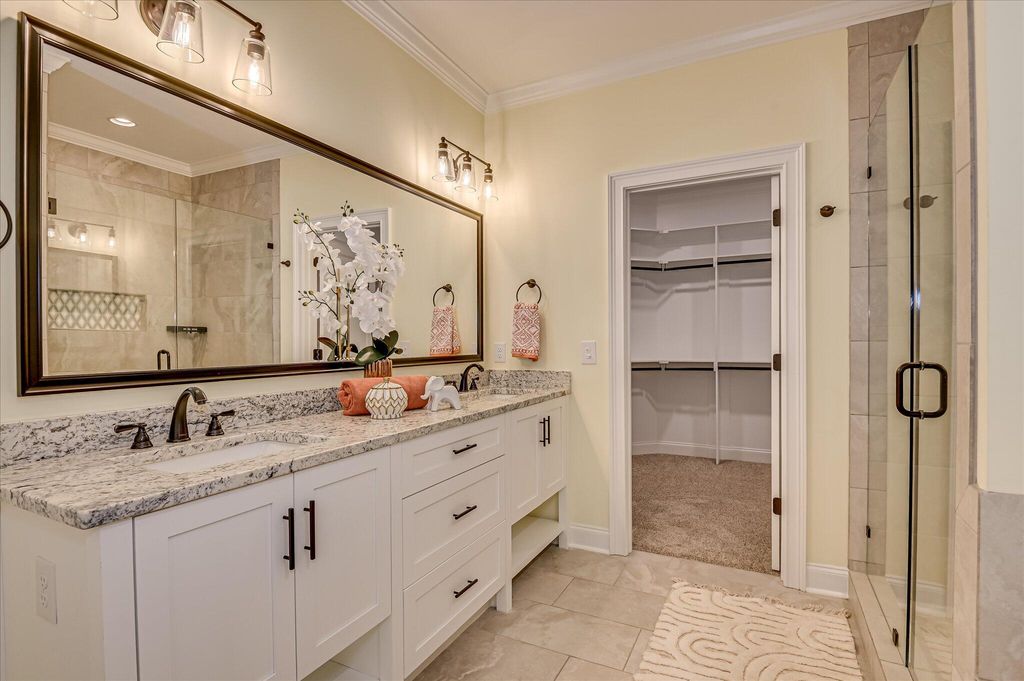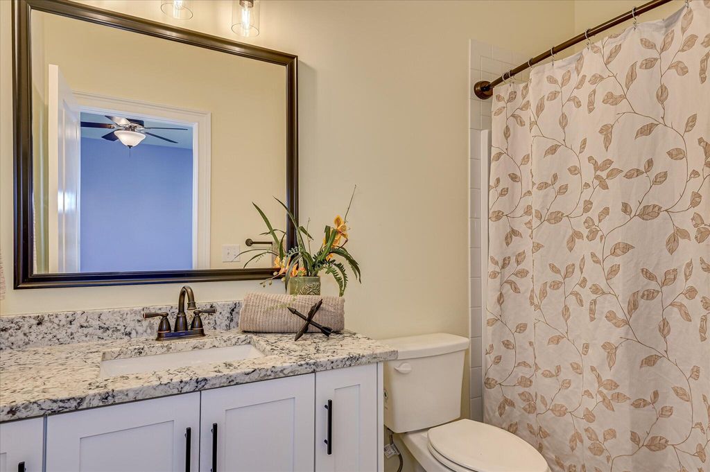 Located in the HIGHLY sought after Highland Lakes Community, this 5 Bed/ 4 full Bath Home boasts 2978 Heated Sq/ ft with every upgrade imaginable. Open-concept, high ceilings. Real hardwood floors, awesome Kitchen. All appliances included: gas range, stainless steel appliances, microwave, dishwasher and Refrigerator. Granite countertops, custom cabinetry, HUGE island. Formal dining, Great room, and a guest bedroom with a full bath all on main level! Owner's suite w/ tray ceiling, walk-in closet connected to the laundry room, tiled shower, and double vanities. 3 Guest Rooms upstairs. Blinds throughout Home, fenced backyard, concrete curbing around all flower beds. Custom garden boxes in backyard with outbuilding to remain! BEAUTIFUL HOME!!