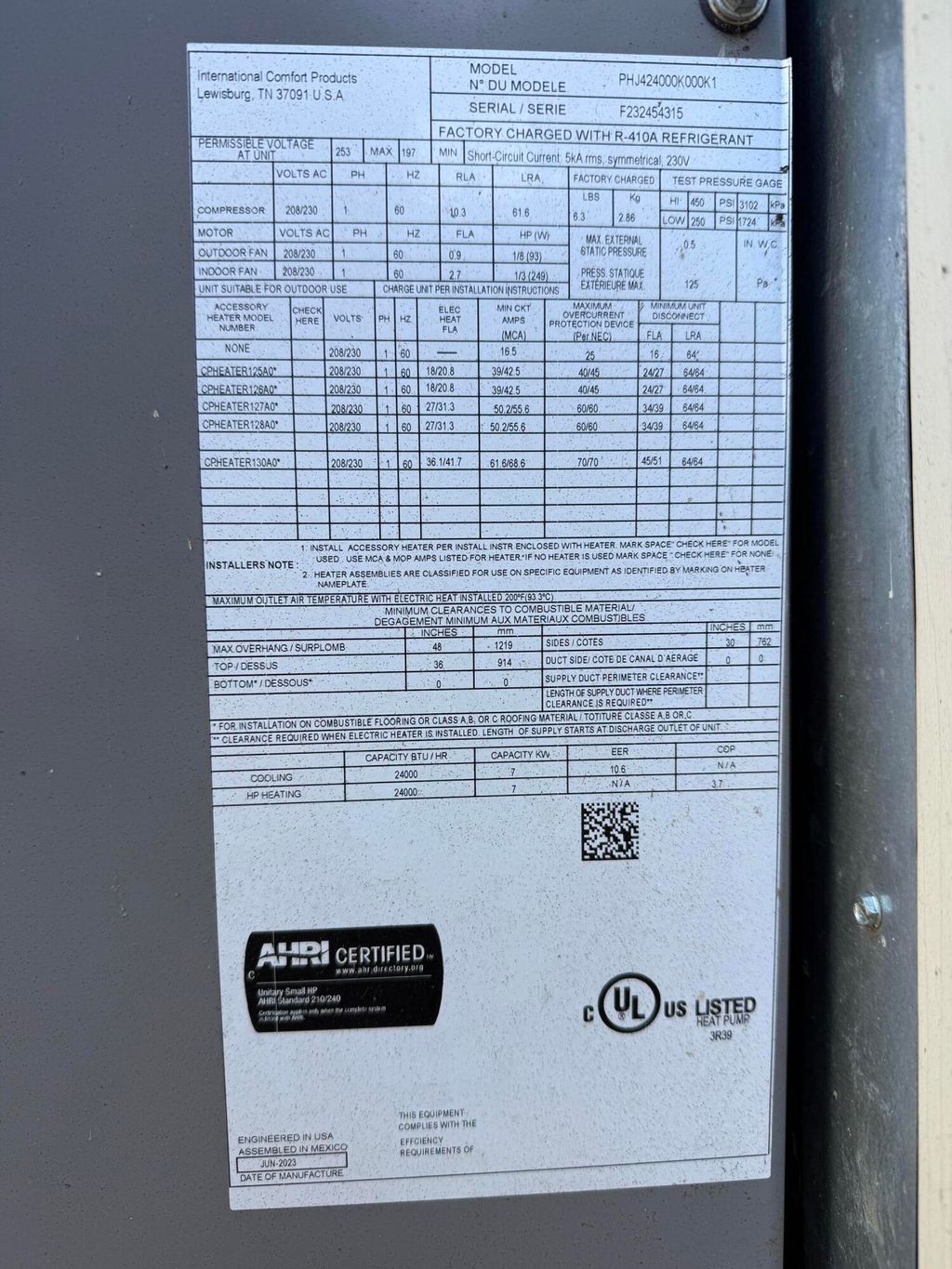 | APPLIANCES | Electric Range, Electric Water Heater, Refrigerator |