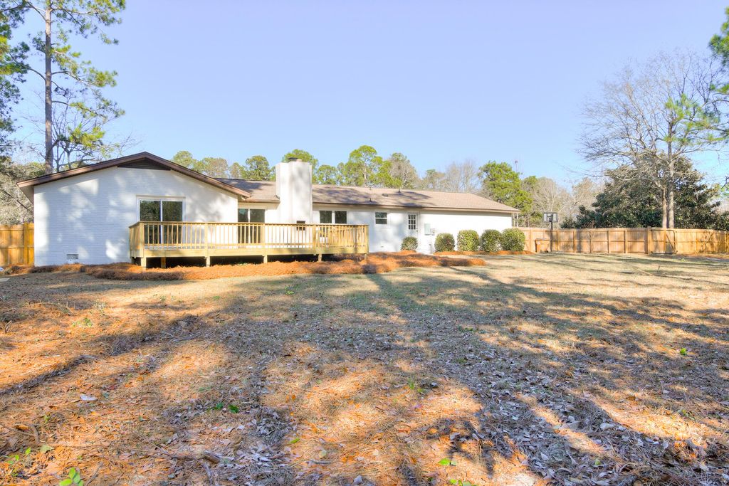 Completely updated ranch home on a flat one-acre lot in the heart of Aiken. This fully remodeled 4-bedroom, 2.5-bath residence offers over 2,300 square feet of stylish, open-concept living space. Updates include new LVP flooring throughout, a brand-new kitchen with quartz countertops, modern cabinetry, and all-new appliances. The kitchen flows seamlessly into the living room, highlighted by abundant natural light, vaulted ceilings, and a fireplace that is perfect for everyday living and entertaining. The master suite features a walk-in closet, tiled shower, and direct access to the back deck. Three additional bedrooms and a full bathroom are located down the hall, offering privacy and flexibility. Step outside to a new deck overlooking the expansive, fenced backyard, which is ideal for relaxing or hosting guests. This move-in-ready home combines space, updates, and location. Schedule your private showing today.
