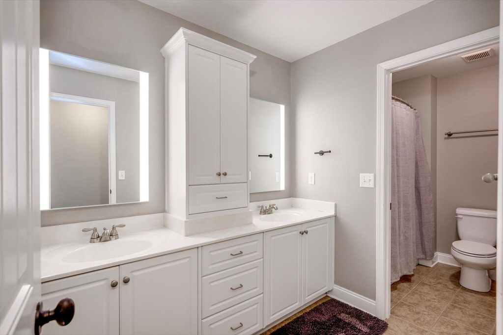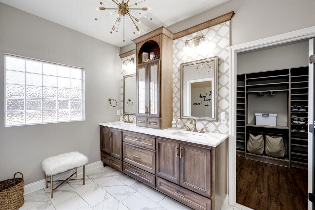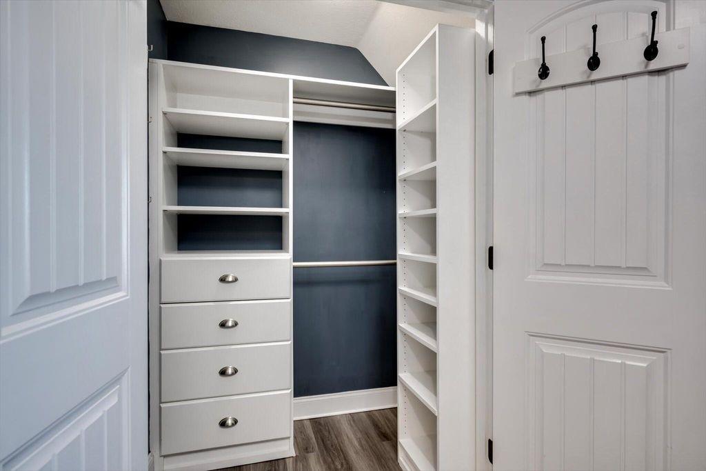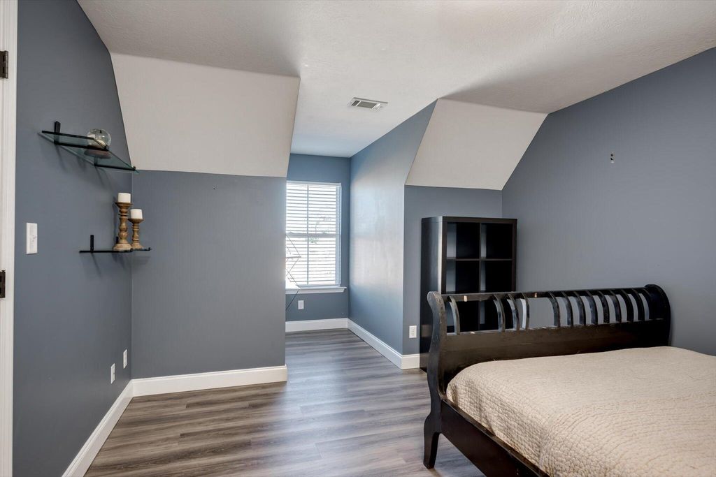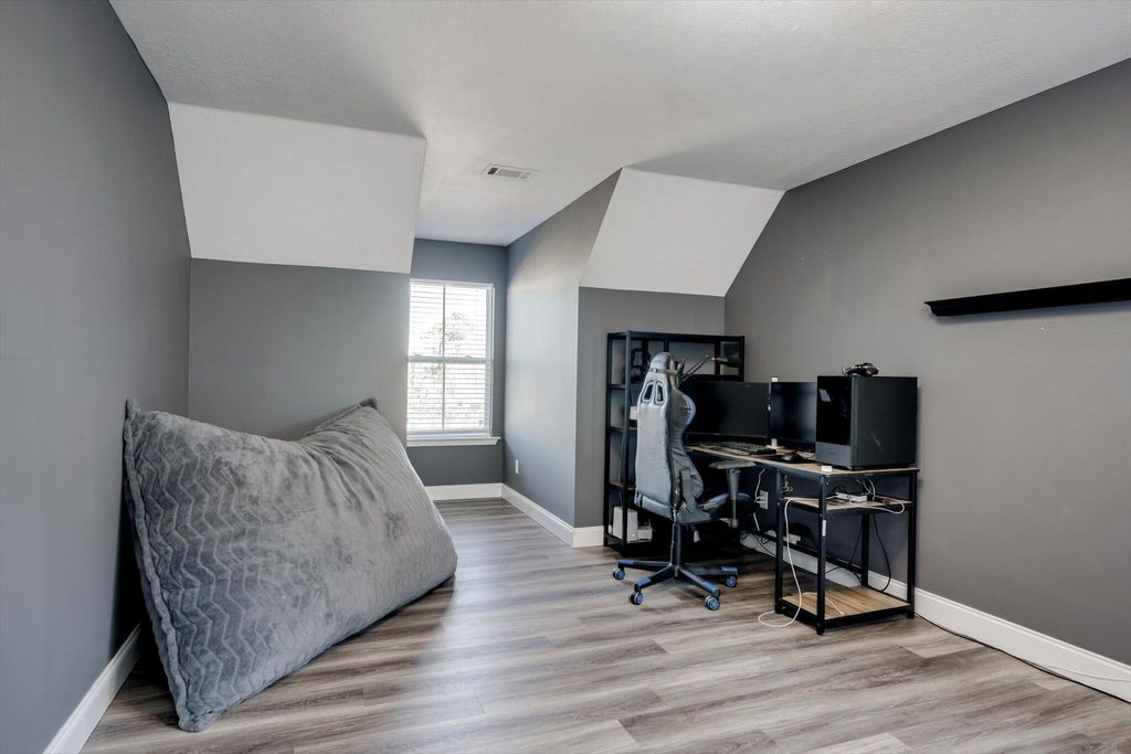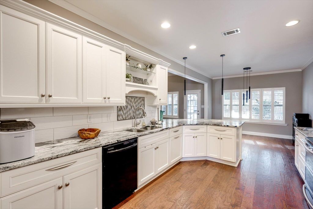 Welcome home to this beautifully maintained 4-bedroom home! The rocking chair front porch home in Somerset offers an oversized upstairs game room/bonus room that could be used as a 5th bedroom (includes closets). As you enter, you're greeted with a 2-Story foyer, also providing an overlook into the Great room with brick Fireplace, perfect to cozy up to on these cold days. Gorgeous hardwood floors in common areas and Plantation Shutters adorn the lower level. The kitchen shines with designer lighting throughout, custom tile work and exquisite granite. Stainless steel double floor oven, microwave, dishwasher and refrigerator all to remain. You'll enjoy the convenience of the lower pullout drawers making it easy to grab those pots and pans. In addition to the downstairs spaces, the spacious Primary Suite is on the main floor with an attached sitting room. You'll find the Ensuite bath to be one of luxury! You'll easily spot the stunning tile work throughout and the details on the custom cabinetry and crown work in bathroom. The walk-in closet is one to write home about! A detail worthy of note is the dreamy wood-look full custom shelving through the entire owner suite closet. Also on the main level is a second bedroom that can be found on the opposite side of home. A great location for added privacy. Upstairs you will find two additional bedrooms and full bath. The purpose-built closet systems in this home will not disappoint! Not only in bedrooms, but laundry room and the walk-in pantry include adjustable storage! An organizers dream. Let's not forget the easy-to-maintain Luxury Vinyl plank flooring in all bedrooms! Oversized two-car garage with substantial shelving and storage along with a newly installed 240V 14-50R socket for EV charging. Outside has a nice long covered back porch with ADA-friendly features, flat lot with privacy fence backing to a tree-lined common area and a personalized walk space leading you to the adorable Playhouse ready for its next story. This is one you don't want to miss.