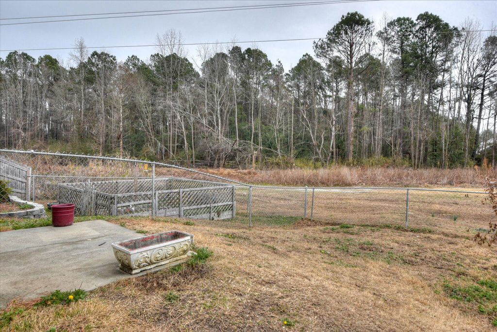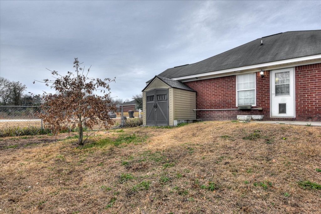 This charming brick ranch is an affordable home with versatile outdoor space for gardening and small-scale homesteading, including space for chickens! Recent updates include a tankless water heater, a garage conversion creating a heated and cooled flex space, USB outlets throughout, added storage shelving, fresh interior paint, French drains along the side yard, separate indoor and outdoor security systems, a fully remodeled kitchen, and extensive backyard improvements. The front yard features an established olive bush, a young fig tree, and garden beds filled with flowering perennials. Inside, the home opens to the living room with a cozy corner fireplace. The dining room sits just beyond and has exterior access to the side yard, making it ideal for entertaining. Double doors from the living room lead to the eat-in kitchen, which has been fully remodeled with storage shelving, additional cabinetry with custom inserts designed to maximize storage, including hidden sink-front storage and dedicated inserts for pots and pans. Beyond the kitchen is the spacious converted garage. This insulated, climate-controlled space is currently being used as an office/man-cave and has added ventilation for cigar smoke removal, a wet bar with sink, refrigerator, deep freezer, and access to the primary bathroom. This is a versatile space that could also be used as a gym. office or rec-room. The bedroom wing includes a laundry closet and two secondary bedrooms that share a full hall bath. The primary suite features a closet and ensuite bathroom (with access to the converted garage) with a dual-sink vanity and tub/shower combination. A private door from the primary suite opens to the backyard deck, with a grilling area, two large fans, and access to the greenhouse on its own electrical circuit. The outdoor space has been fully utilized, with irrigation in both the front and back yards. The side yard includes two fenced sections, a gate connecting to the backyard, patio area, chicken coop, storage sheds, raised garden beds with individual irrigation lines, established berry bushes, extended bulb beds, and mature trees including jujube date, weeping cherry, and a young oak. With no neighbors directly behind or to one side, the property offers a high level of privacy. Conveniently located off Peach Orchard Road, the home provides easy access to Plant Vogtle, Fort Gordon/Eisenhower, John Deere, Augusta Regional Airport, Augusta University, Augusta Tech, and the Medical District, along with nearby shopping, dining, parks, and golf. This property offers strong value and convenience in the growing South Augusta area.