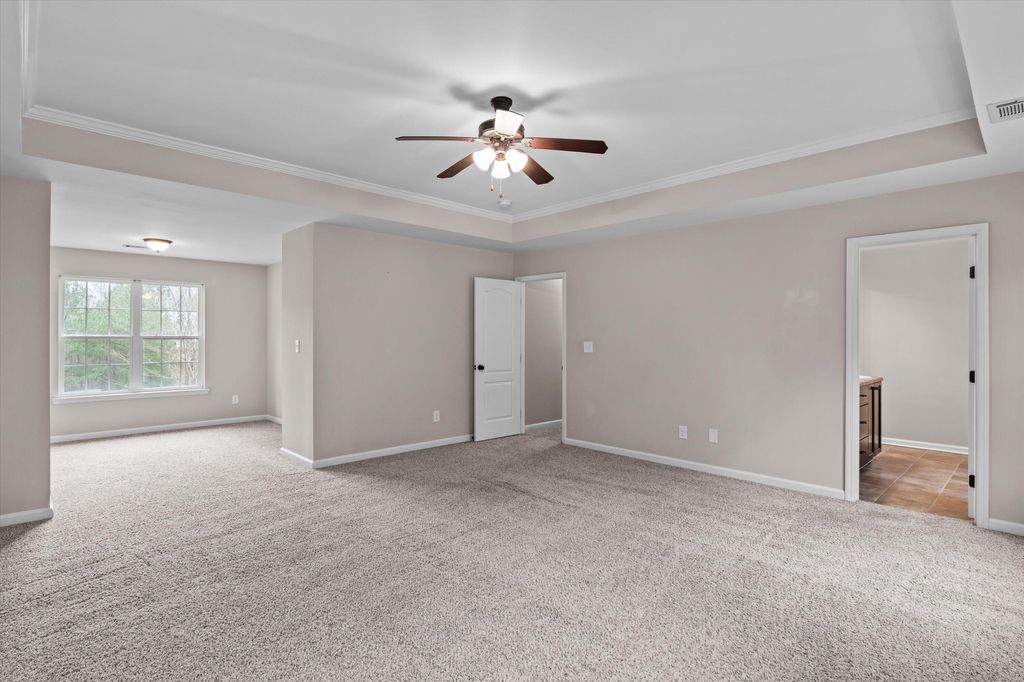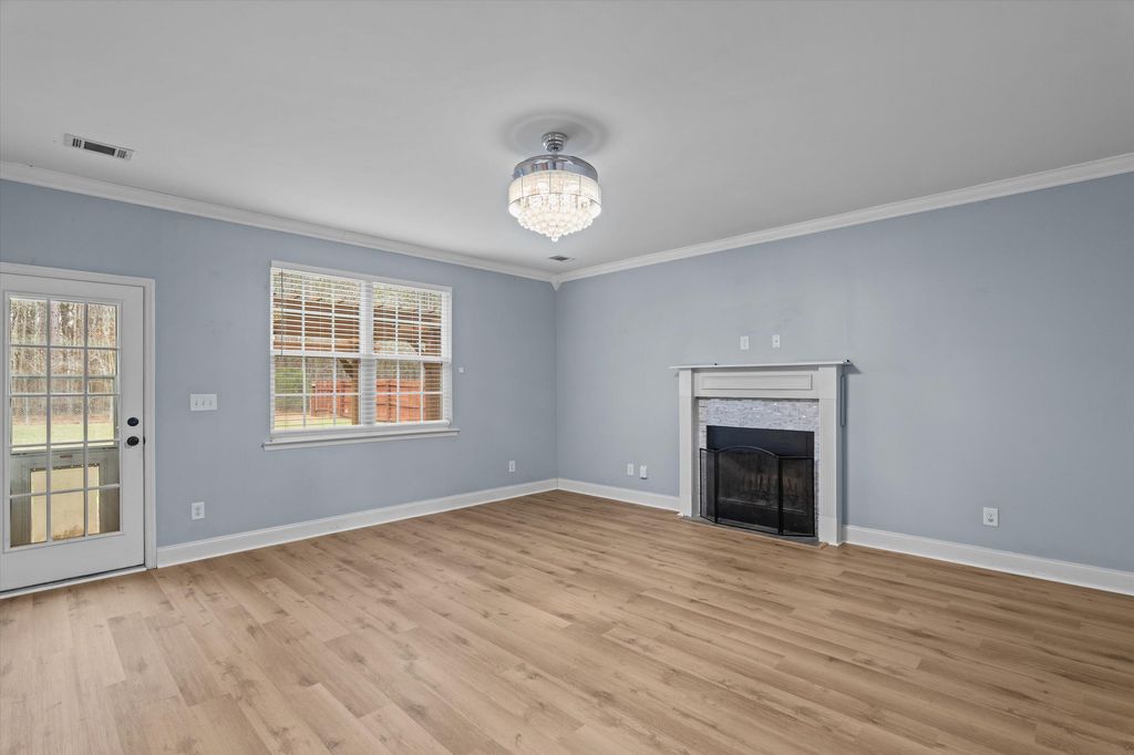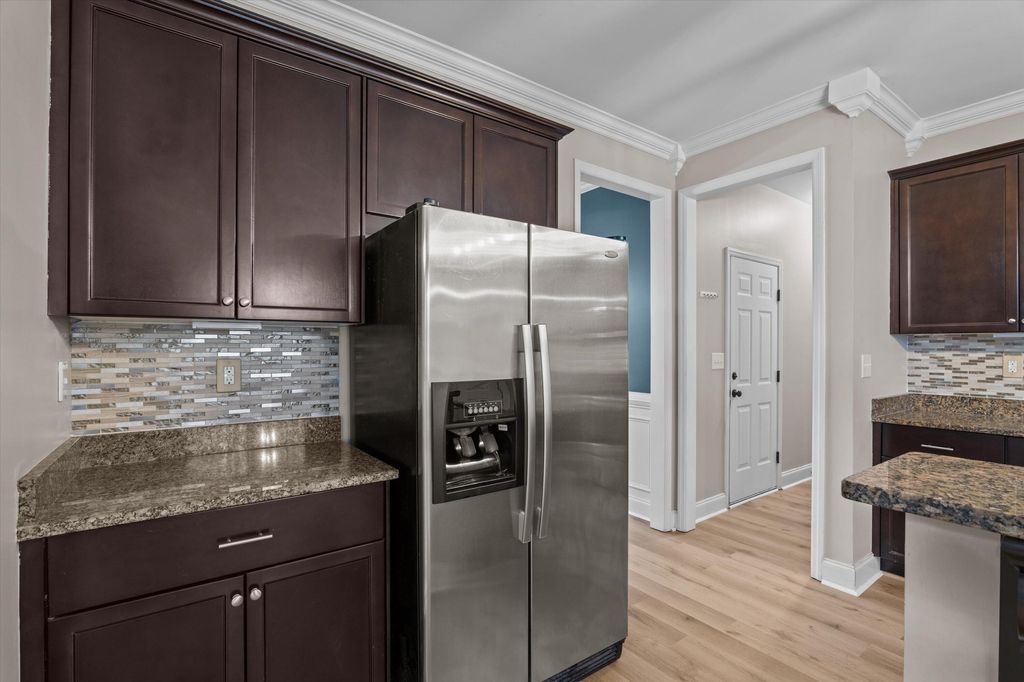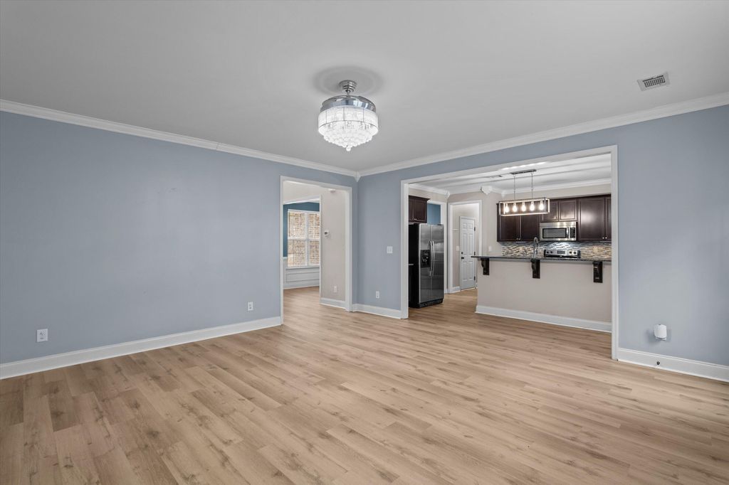 Set on over 2.5 acres, this five-bedroom home delivers space, scale, and quiet luxury in a neighborhood designed for breathing room. From the moment you arrive, the welcoming front porch with Craftsman-style columns sets the tone for a home that blends classic design with modern comfort. Inside, a two-story foyer creates an immediate sense of arrival, flanked by a formal dining room with coffered ceilings and wainscoting "” ideal for hosting "” and a formal living room that easily doubles as a private home office or sitting room. The heart of the home opens into a spacious living area with a wood-burning fireplace that flows seamlessly into the kitchen, making everyday living and entertaining effortless. The eat-in kitchen is both functional and refined, offering granite countertops, stainless steel appliances, a large island, and a walk-in pantry "” designed to handle everything from quiet mornings to full-house gatherings. The primary suite is a true retreat, featuring its own sitting area, tray ceilings, a walk-in closet, double vanity, separate shower, and a garden tub "” a space that feels calm, private, and intentionally designed. Five bedrooms and three full baths provide flexibility for guests, growing households, or multi-generational living. Outside, the fenced backyard offers room to roam, play, or unwind in privacy, complete with a storage shed for added convenience. A two-car garage rounds out the home with everyday functionality, while the expansive lot provides the kind of space that's becoming increasingly hard to find. Inside, the entire first floor has been refreshed with brand-new waterproof LVP flooring, adding durability and a clean, modern finish. Private. Spacious. Thoughtfully designed. This is the kind of home that feels like a lifestyle upgrade the moment you walk in. Schedule your private showing today!