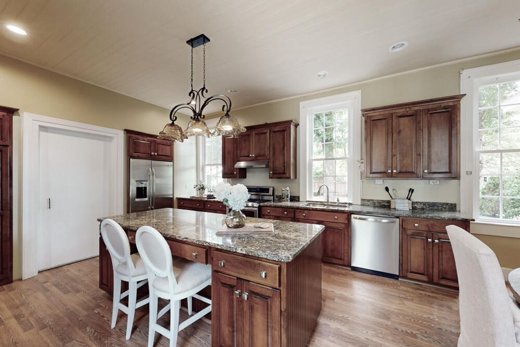 Welcome to this Spectacular and Timeless home that truly takes your breath away, nestled on 2.44 lush acres of mature landscaping and breathtaking outdoor spaces, this could be your own personal oasis! As you pull through the gated entry, this remarkable property offers a stunning array of features, including a beautiful courtyard with an exquisite fountain and original brick accents, detached 2-car garage with a lean-to and additional storage room, a spacious 7-bay garage (a car collector's dream!), and an RV/Boat carport - perfect for all your outdoor toys plus a pool with deck surrounding and a pool house with a game room and a half bathroom! For equestrian enthusiasts, there are 3 horse stalls, making this estate a true countryside retreat! Built in 1911 and only the second owners to ever reside here, this historic home exudes charm and character at every turn! The grand front porch boasts show-stopping columns that lead into the expansive welcoming foyer, offering endless possibilities for decorating! The living room features a cozy fireplace, ceiling fan, and elegant medallion, with large double pocket doors opening into the dining room, which is adorned with a fireplace and custom window detailing, perfect for entertaining in style! The chef's kitchen is a culinary haven, complete with granite countertops, a large island with bar seating, a 5-burner gas range, dishwasher, wall pantry, refrigerator, and a fireplace! The adjacent breakfast room, with its second fireplace, ceiling fan, and views of the interior breezeway with original brick walls, creates a warm and inviting atmosphere! The owner's suite on the main level is a private retreat with a tongue-and-groove ceiling, two fireplaces with tiled surrounds, and a cozy sitting room! The completely remodeled bathroom is stunning with a double quartz vanity, hand-selected framed mirrors and wall sconces, two linen towers with open shelving, a walk-in tiled shower, and a walk-in closet with custom built-ins - luxury at its finest! Upstairs, you'll find a beautiful original mirror guiding you to an enchanting landing with a stunning floor-length arched window and a delightful Juliet balcony overlooking the grounds! Three additional spacious bedrooms, a large fully walk-in attic, and a bathroom with a shower, also plumbed for a tub - offer ample space for family and guests, with the perfect spot to add a clawfoot or standalone soaking tub! A charming powder room with an updated vanity and framed mirror, along with a huge laundry/mudroom featuring custom built-ins for organization, add to the home's practicality! Additional highlights include a storage room just off the kitchen, a gorgeous side porch running the length of the home with tongue-and-groove ceilings, fans, and a swinging bench - ideal for relaxing outdoors! This breathtaking estate combines historic charm with modern amenities and spectacular outdoor living, making it a truly extraordinary place to call home!