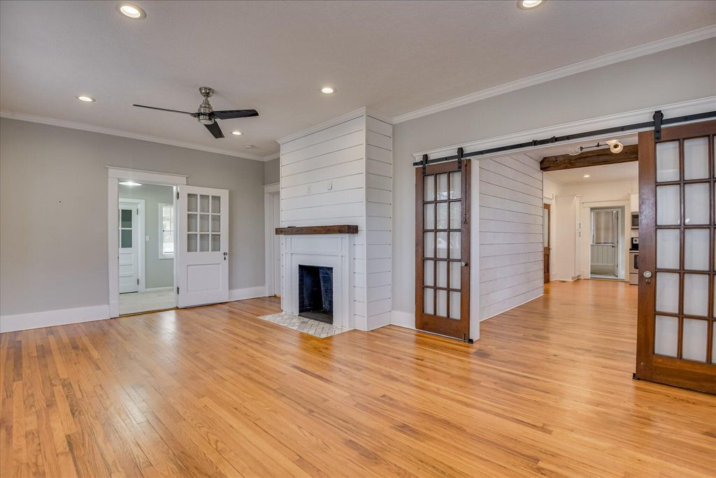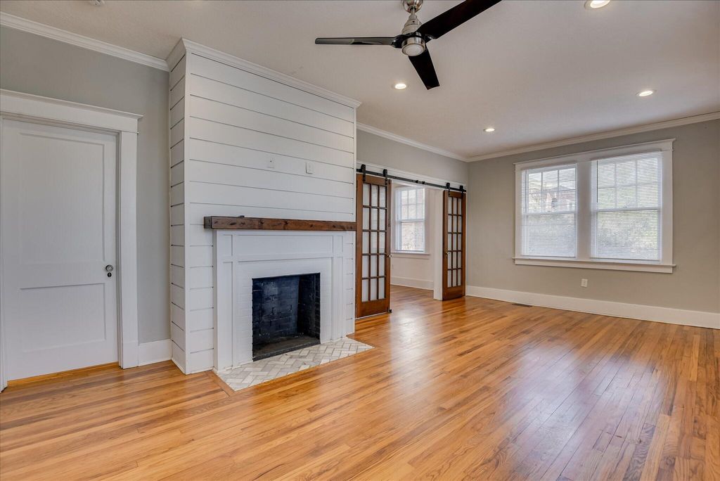 Welcome to this beautifully updated 4-bedroom, 2.5-bath home, ideally located near Augusta University and the Medical District. Built in 1941, this classic home blends historic charm with modern comfort, including beams, barn doors and original hardwood floors, just to name a few. Inside, you'll find a spacious primary bedroom complete with a fireplace and a private ensuite bathroom. A second bedroom features its own half bath for added convenience. The third bedroom is roomy and versatile and utilizes the shared bathroom, while the remaining bedroom could be used for sleep or a cozy home office. The fully updated kitchen boasts modern stainless steel appliances, quartz countertops, a double bowl sink and ample cabinet space. All bathrooms have been tastefully renovated to match today's style and standards. Outside, enjoy the convenience of a detached 2-car garage with extra space for a workshop or storage. The private backyard offers a peaceful retreat with mature landscaping and room to unwind.