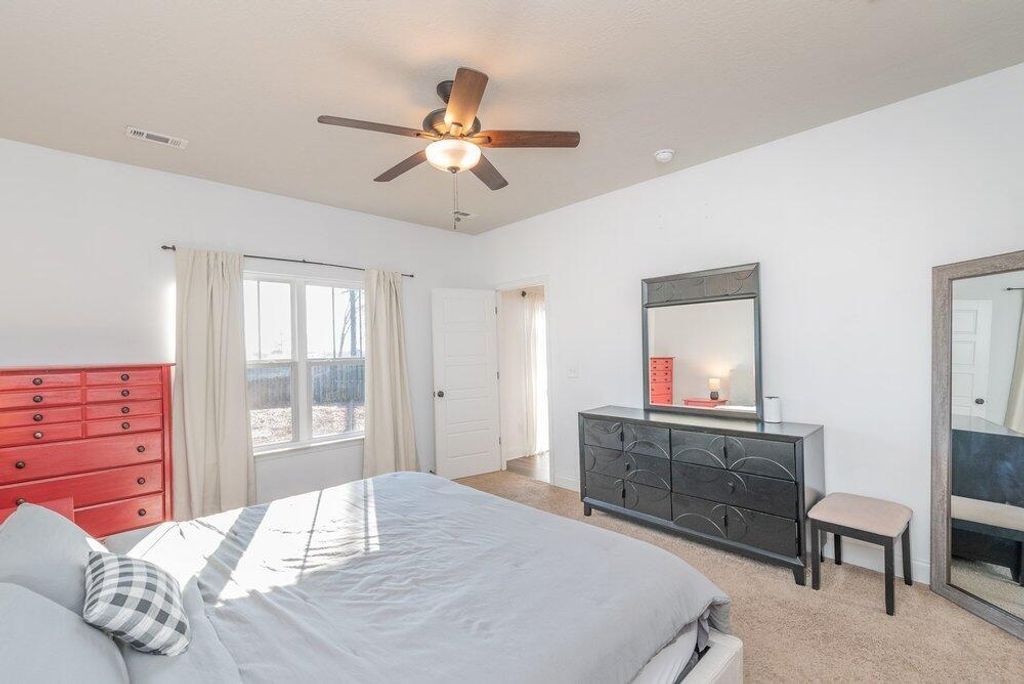 Welcome to 163 Beallwood Drive, a beautifully designed ranch home in Harlem, ideally located within Columbia County Schools and best of all, with NO HOA! From the charming Hardiplank exterior, sidewalks, streetlights, and welcoming front porch, this home immediately sets a calm, established tone. Inside, a private foyer opens to a light-filled open floorplan featuring durable LVT flooring and cool, modern color tones, while a flexible dining room or home office just off the entry adapts easily to everyday living. The kitchen anchors the heart of the home with granite countertops, a crisp white subway tile backsplash, stainless steel appliances, and ample workspace, flowing seamlessly into the main living area for effortless entertaining. Sliding glass doors invite natural light and open to a large, fenced, and irrigated backyard"”perfect for morning coffee, playtime, or quiet evenings outdoors. The owner's suite offers a peaceful retreat with separate vanity sinks, a soaking tub, and a separate shower, while additional bedrooms are thoughtfully arranged for privacy and flexibility. Ideal for first-time buyers or those looking to downsize without compromise, this home blends comfort, function, and freedom and with a seller-offered assumable option, 2.99%, must qualify for a VA loan. Quick commute to base, Fort Eisenhower a quick drive away. So much to say. We're excited for your call!