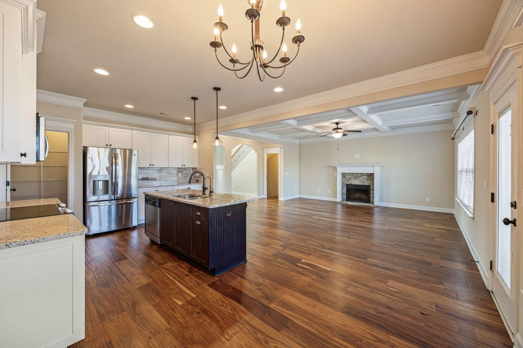 If you've been wishing for real space "” the kind where everyone can spread out and still come together "” this is the one to see. Now offered at 465,000, this massive, move-in-ready home delivers something you simply don't find often in this neighborhood at this price. Now vacant and easy to tour, the home feels even bigger the moment you walk in. Coffered ceilings, rich wood floors, and thoughtful details set a warm tone, while the open layout makes everyday life feel effortless. The great room invites gatherings around the fireplace and flows right into a spacious kitchen with granite counters, stainless appliances, a large island, and a walk-in pantry "” perfect for busy mornings or hosting everyone you love. The owner's suite is its own retreat, featuring a cozy sitting area, with a second fireplace, and a spa-like bathroom with dual vanities, soaking tub, tiled shower, and an oversized walk-in closet. It's the kind of space that lets you truly exhale at the end of the day. Need flexibility? You've got it. A full bedroom and bath on the main level works beautifully for guests or multi-generational living. The finished walk-out basement adds a whole second living area, plus another bedroom and full bath "” ideal for a media room, home gym, or long-term guests who want their own space. Out back, enjoy a fenced yard that backs to peaceful green space and a gentle creek. The enclosed porch is made for morning coffee, quiet evenings, and everything in between. Set in a friendly swim and play community with sidewalks, playground, and trails "” and close to schools, shopping, and dining "” this home stands out not just for its size, but for its value. At this new price, it's an opportunity that's hard to ignore. Come see how much home you can get "” schedule your showing today