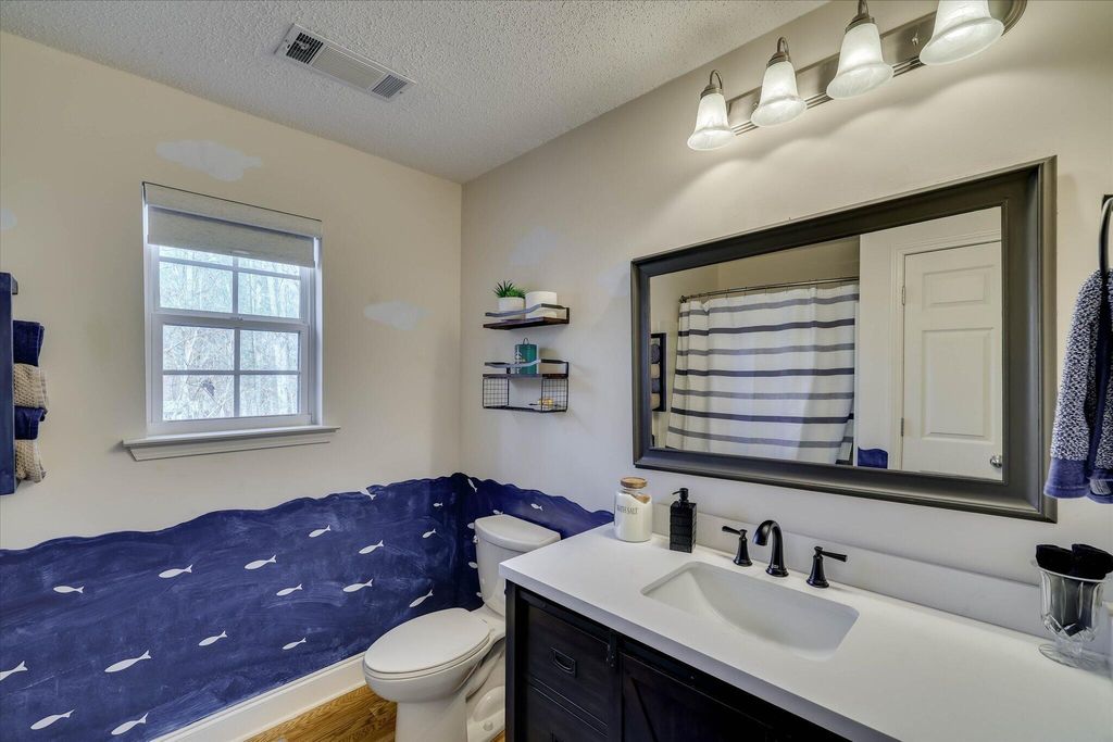 Beautifully renovated bungalow near Lake Thurmond with NO HOA, offering flexibility, privacy, and income potential. This 3-bedroom, 2-full-bath home features an open floor plan that creates a bright, welcoming living space centered around a cozy fireplace, ideal for entertaining or unwinding after a day on the lake. A unique mezzanine level with a full bathroom overlooks the main living area and offers excellent versatility as a guest suite, potential primary suite, home office, or bonus space. Situated on 0.27 acres, the fully fenced property provides privacy and functional outdoor space for gatherings, pets, or equipment storage. Recent renovations include new light fixtures, updated vanities, and refreshed finishes throughout, along with an encapsulated crawl space for added efficiency and long-term peace of mind. The home is currently used as both a lake retreat and a short-term rental, making it well-suited for full-time living, a weekend getaway, or an investment opportunity. Enjoy the lake lifestyle just minutes away"”an underbrushing permit is in place through the Army Corps, with a boat ramp and lake access nearby. Whether you're seeking a personal escape or a versatile property near the water, this home delivers comfort, freedom, and opportunity in a desirable Lake Thurmond setting.