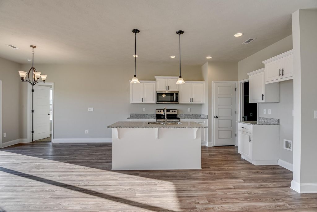 As one of our only ranch-style, 4 bedroom plans, the Richfield is among the most spacious homes available. Walking through the front door, a study can easily be made into an upgraded dining area with arches, the sprawling kitchen boasts a convenient center island and modern cabinetry finishes. This plan features a split bedroom layout with three bedrooms on one side and the master on the other. The master bath contains a separate double vanity and large owners. Photos are Stock Call list agent for details. LOCKBOX LOCATED AT 1663 PINE RIDGE DRIVE NORTH Builder is offering 12,000 in builder's incentive (Subject to change, contact list agent for details)