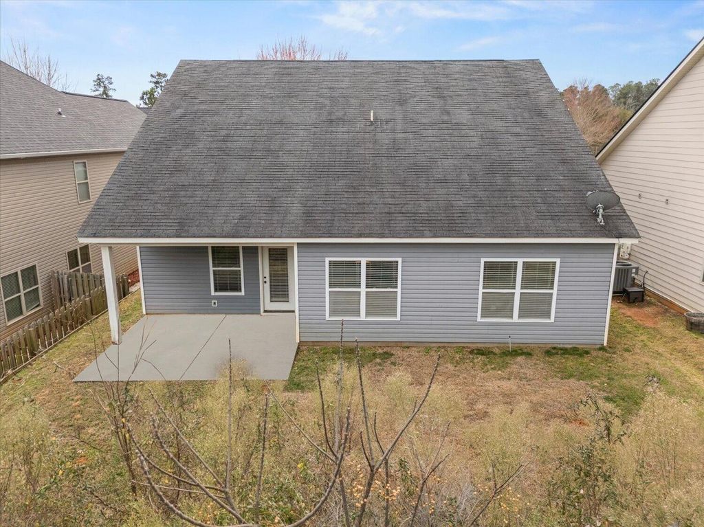 Tucked away in a cul-de-sac in the desirable Hidden Creek subdivision, right in the heart of Columbia County! This charming 3-bedroom, 2-bath home offers the perfect blend of comfort, style, and convenience. Step inside to an inviting, open layout designed for both everyday living and effortless entertaining. High vaulted ceilings create a bright, airy feel, while the cozy electric fireplace adds warmth and charm to the main living space. Just outside, the covered backyard patio is ideal for grilling, gathering with friends, or simply unwinding at the end of the day. The kitchen is made for connection, featuring beautiful granite countertops, a convenient breakfast bar for casual dining, and plenty of space to cook and host with ease. The oversized primary suite is a true retreat, complete with a relaxing garden tub, walk-in shower, dual vanity, and a spacious walk-in closet to keep everything organized. New HVAC system installed in 2024. Additional highlights include a 2-car garage and a spacious attic offering abundant storage. Residents of Hidden Creek enjoy access to a clubhouse and community pool, adding even more lifestyle appeal. Conveniently located just minutes from shopping, dining, and Fort Eisenhower, this home truly checks all the boxes. Come see why this one feels like home the moment you walk in!