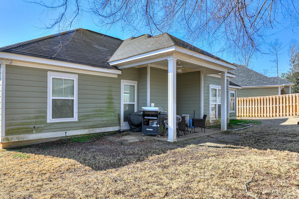 Bright and open, single-level floor plan featuring 3 bedrooms and 2 bathrooms in Briarcliff, centrally located near shopping, dining, I-20, and Fort Gordon. This home offers an eat-in kitchen with a functional island, granite countertops, stainless steel appliances, spacious pantry, and cabinetry with accent lighting plus a formal dining room that provides an ideal space for hosting family and friends. The split bedroom layout offers added privacy for the primary suite, which features an architectural tray ceiling, double vanities, an oversized garden tub, separate shower, and walk-in closet. Two additional nicely sized bedrooms and a shared bathroom complete the interior. Outdoor includes a covered patio -- perfect for summer cookouts-- and a fully fenced backyard. The two-car garage features epoxy-coated, stain-resistant flooring and ample storage space. An ideal place to call home, offering low-maintenance living, comfort, functionality, and convenience. Property is being sold As-Is.