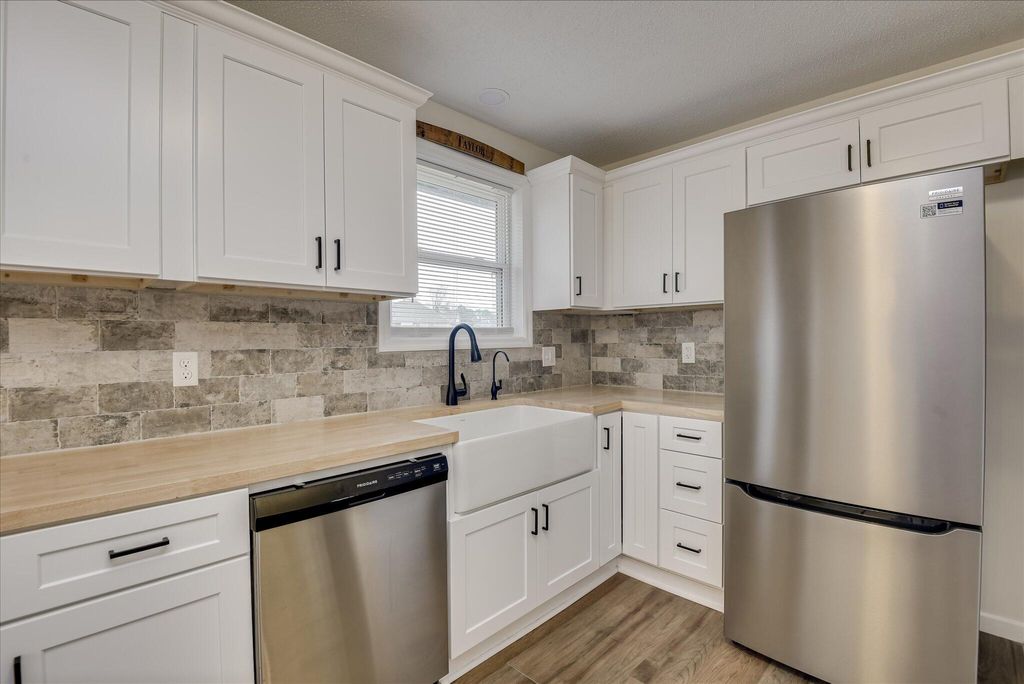 Classic brick. Elevated lot. Mature trees. Presence from the street -- and no HOA fees. This freshly painted 3-bedroom split-level offers 1,804 square feet of flexible, move-in-ready living -- thoughtfully upgraded and built for real life. Updated siding, bold black shutters, and the gently raised setting give the exterior a confident, established feel that stands out. Inside, upgrades continue throughout. Warm LVP flooring, updated fixtures, and clean neutral tones create a modern foundation. The main living area flows seamlessly into the dining space and refreshed kitchen, where crisp white cabinetry, stainless steel appliances, sleek hardware, and a timeless tile backsplash combine style with function. Generous counter space makes everyday routines simple. Upstairs, comfortable bedrooms are thoughtfully arranged for separation and flow. Two full baths and one half bath add convenience for guests and busy schedules. Downstairs, a versatile flex space adapts to your needs -- second living room, home office, gym, or media room. And yes -- there's a garage. A true one-car garage provides valuable storage, parking, or workshop flexibility buyers appreciate. Out back, the oversized fenced yard offers depth, usable space, and room to create exactly what you want -- firepit nights, garden beds, play space, or future outdoor additions. The existing concrete patio is ready for grilling and gathering, making it easy to enjoy from day one. Upgrades. Flexibility. Garage. No HOA. Space to grow. If you've been waiting for a home that delivers value inside and out -- this one earns your attention and deserves a visit.