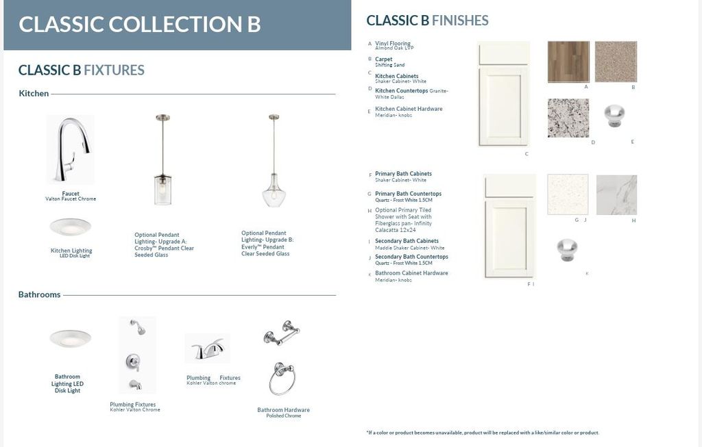 SPECIAL FINANCING rates as low as 4.75%, for life of loan, PLUS up to 6,000 Dollars towards closing costs with use of preferred lender. See Sales Manager for details. 2000 Dollars Real Heroes discount available for qualified buyers (active and retired military, first responders, and teachers). Step into your dream home with the stunning Lambert Plan in Hickory Woods, a beautifully designed 4-bedroom, 3-bathroom residence offering 3,045 square feet of modern elegance and thoughtful upgrades. The chef-inspired kitchen is a true highlight, featuring granite countertops, stainless steel appliances, a spacious island, and 42'' upper cabinets, perfect for both cooking and entertaining. The open-concept design flows seamlessly into the bright and spacious living room and dining room, ideal for gatherings. A stained oak staircase leads to the upper level, where you'll find a large flex space and the luxurious primary suite. The suite includes a generous bedroom, an oversized walk-in closet, and an impressive ensuite bathroom with double vanities, a soaking tub, and a tiled shower with a seat. Three additional bedrooms are equally spacious, making it perfect for family or guests. On the main level, one bedroom and a full bathroom provide added convenience. The mudroom features built-in cubbies and a bench. Thoughtfully designed storage areas, a large pantry, and durable LVP flooring in the common areas, bathrooms, and laundry room enhance practicality, while carpeted bedrooms provide warmth and comfort. Outside, a charming patio overlooks the fully sodded yard, offering the perfect space for grilling or relaxing. Garage size matters, so all of ours are over 21' x 19', giving you ample room for parking and storage. Standard features include gutters, a sprinkler system, quartz bathroom countertops, and fiber cement board siding, ensuring durability and style. Schedule your private tour today and make this stunning home yours! Energy efficient construction inspected and tested by The Home Energy Rating System (HERS) Index. Photos used are for illustrative purposes only. Colors and finishes may vary.