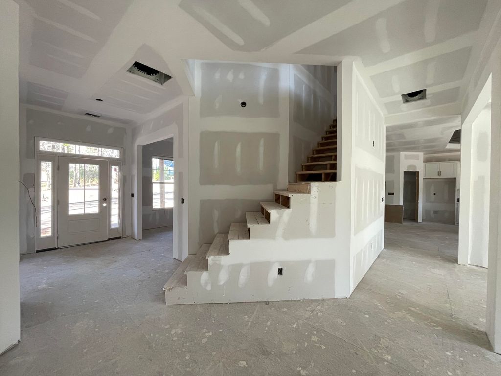 UNDER CONSTRUCTION in Mount Vintage! Hurricane Builders presents the modified Emily floor plan, perfectly positioned on a private 0.58-acre homesite with mature trees offering both privacy and beautiful views of the golf course and pond. Enjoy the rare bonus of private walk-on access directly to the golf course from your backyard. Designed for both everyday living and entertaining, this home features a formal dining room at the front of the home with convenient access to the kitchen through a butler's pantry, ideal for hosting gatherings and holiday meals. The chef's kitchen combines luxury and functionality with an oversized center island, accent ceiling, double ovens, gas range, pot filler, and a spacious walk-in pantry. The open family room is a true focal point, showcasing a coffered ceiling, abundant natural light, and a raised electric fireplace. The main level also includes a private office or study along with a secondary bedroom, perfect for guests or multi-generational living. Upstairs, the spacious primary suite offers expansive dual vanities, a soaking tub, tiled shower, and an oversized walk-in closet. Two additional bedrooms, a flexible bonus room that can serve as a fifth bedroom or second office, and a large media room wired for theater lighting provide exceptional versatility and entertainment space. Additional highlights include a tankless water heater, a two-car side-entry garage, and plenty of storage throughout. Located in the prestigious Mount Vintage Plantation, residents enjoy top tier amenities including a Fitness Center, Junior Olympic-sized Pool, Tennis Courts, Bocce Ball Courts, a community Lending Library and 27 hole championship golf course! Don't miss the opportunity to make this extraordinary home yours, schedule your private showing today! Buyer selections for countertop and flooring colors are available with an accepted contract prior to March 6, 2026.