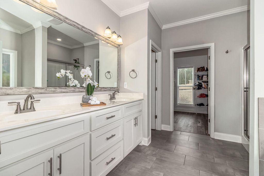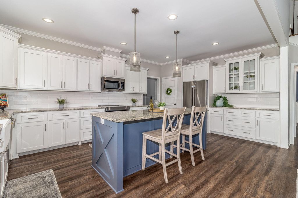 Welcome Home to Lakes & Streams! Fall in love with this fabulous waterfront 4-bedroom, 2.5-bath home perfectly situated in the beautiful Lakes & Streams community. From the moment you arrive, the charming rocking chair front porch warmly welcomes guests and sets the tone for everything this home has to offer. The Stunning Kitchen includes - Granite countertops & stylish backsplash - Huge island with breakfast bar - Pantry for extra storage - Range, refrigerator, dishwasher & built-in microwave , This home is Perfect for entertaining or everyday living! Offering -Inviting Living Spaces - Vaulted ceiling & cozy fireplace in the living room - Elegant dining room with coffered ceiling -Mud bench & half bath. The Owner's Suite is located on the main floor and is a dream with -Tray ceiling - Spa-like bath with double sink vanity - Relaxing soaking tub - Separate shower & private water closet - Large walk-in closet. Upstairs features spacious secondary bedrooms, a full bath with ceramic tile, plus walk-in attic space for extra storage. You will love the Outdoor Living - Covered patio with peaceful waterfront views -Full sprinkler system- Professionally landscaped yard - Back yard is fully fenced and level. This home has Energy-Efficient Upgrades, including - Radiant barrier roof decking -Architectural shingle roof -Gas tankless water heater. Enjoy neighborhood lakes, fountains, and green space -- the perfect blend of beauty and community living. This waterfront beauty truly has it all. Don't miss your opportunity to call it HOME!