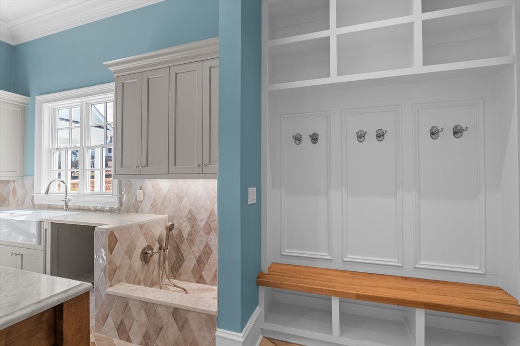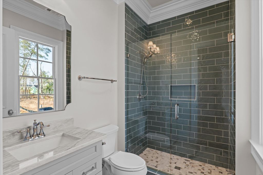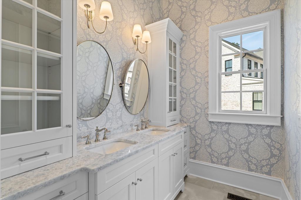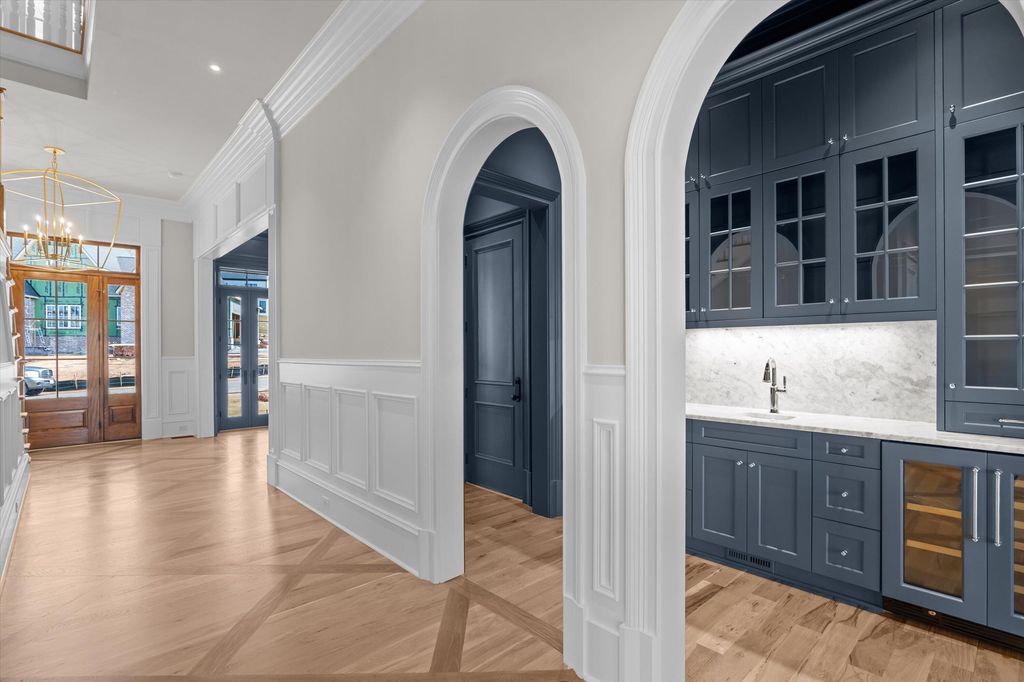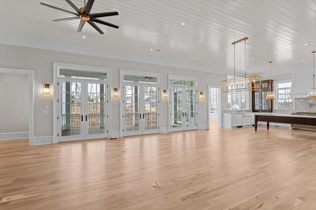 881 Audubon Way Built by BEC Custom Homes Welcome to 881 Audubon Way, an extraordinary custom estate located in the prestigious River Island community. This breathtaking luxury residence offers over 9,000 square feet of refined living space, plus an additional 800 square foot pool house designed for elevated entertaining and resort style living. From the moment you arrive, the home's exceptional curb appeal captivates with expansive double front porches, timeless architectural presence, and a gracious portico entry that allows guests to park before reaching the garages. A convenient side entry provides easy access into the home, blending beauty with everyday functionality. Inside, you will find 8 spacious bedrooms, 9 full baths, and 2 half baths, offering privacy and flexibility for family and guests alike. Main Level Living at Its Finest The primary suite on the main level rivals a five-star resort and features heated marble bathroom floors, luxurious marble finishes, a spa inspired shower, and custom his and hers closets including a stunning ladder system in hers. A main level guest suite provides comfort and privacy for visitors. At the front of the home, a dedicated study includes a small office area complete with custom cabinetry and built in shelving, ideal for working from home while maintaining a refined, tailored aesthetic. Just off the kitchen, a light-filled sunroom offers the perfect place to relax, gather, or enjoy views of the outdoor living spaces. The main level also includes both a single car and double car garage for ample parking and storage, while the lower level features an additional golf cart garage. A True Chef's Kitchen Designed to impress and perform, the gourmet kitchen includes a 48-inch ILVE professional range, a 48-inch Sub Zero refrigerator, two dishwashers, and an expansive combined scullery and walk in pantry that provides exceptional storage and prep space for effortless entertaining. Elevated Craftsmanship Throughout Custom cabinetry, white oak floors, and soaring 12-foot ceilings on the main level, with 10-foot ceilings upstairs and in the basement, enhance the home's architectural presence. Pella windows and doors flood the interior with natural light while maintaining exceptional quality and efficiency. A custom wrought iron stair railing serves as a striking architectural focal point. Exceptional Function and Design The lower level is designed for effortless entertaining and includes a full basement kitchen equipped with GE Cafe appliances and everything needed to host gatherings with ease. Additional spaces include a theater room, home gym, and a bunk room with custom built in bunks. Even the laundry room is one of a kind, complete with a dog washing station and dedicated feeding area. Outdoor Oasis The additional 800 square foot pool house is heated and cooled, allowing for comfortable entertaining all year round. This beautifully designed space features a wet bar complete with a mini refrigerator and ice maker, along with its own full bathroom. A convenient entry provides the ideal space for towels and guests to leave pool belongings, creating seamless indoor and outdoor living. All of this overlooks the heated Gunite pool and hot tub, forming a true private retreat. This remarkable River Island estate seamlessly blends grand scale living with intimate luxury, a rare opportunity to own a truly exceptional custom home in one of the area's most sought after communities.
