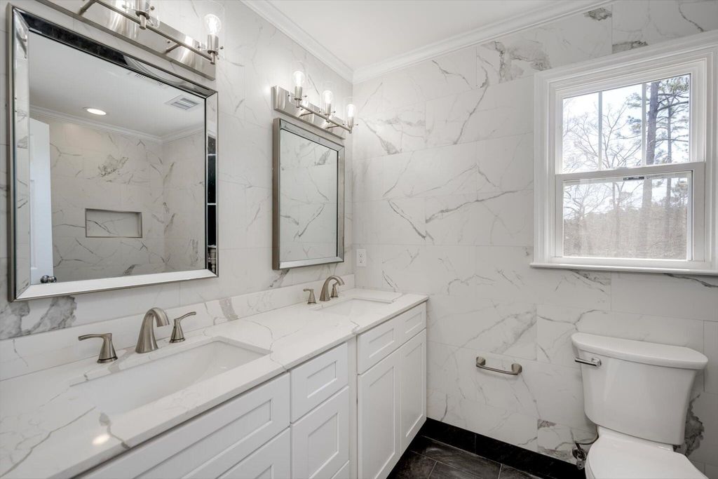LIKE NEW ONLY BETTER QUALITY! Welcome to an exceptional opportunity in The Rapids, one of North Augusta's most coveted neighborhoods. Tucked away on a quiet cul-de-sac and situated on nearly half an acre, this exquisitely renovated four-bedroom, three-and-a-half-bath residence offers the perfect blend of space, charm, and everyday functionality. Step inside to discover beautifully refinished oak hardwood floors, detailed crown molding, and a spacious family room complete with built-in shelving and a cozy fireplace. Formal living and dining rooms provide elegant spaces for entertaining, while the stunning, fully renovated kitchen is truly the heart of the home. Featuring all-new custom cabinetry, quartz countertops, a new range and vent hood, a new dishwasher, and a sunny breakfast area with a bay window overlooking the backyard, every detail has been thoughtfully curated. Just beyond the breakfast area, a bright sunroom invites you to relax year-round and opens to an expansive new deck, ideal for hosting gatherings or enjoying the peaceful, private setting. The generously sized primary suite offers a walk-in closet and a beautifully updated bath with dual vanities, a soaking tub, and a separate tiled shower. Three additional bedrooms provide flexible living arrangements, including a spacious room above the two-car garage that serves perfectly as a fourth bedroom or private guest suite. Two secondary bedrooms share a fully updated hall bath. Don't miss the ''hidden'' staircase leading to the finished third level, a versatile bonus space ideal for a playroom, game room, home office, gym, or whatever suits your lifestyle. Every surface of this home has been tastefully renovated. Brand-new bathrooms feature updated tile, fixtures, and countertops. A completely reimagined kitchen with high-end finishes. Fresh interior paint throughout. Plush new carpet in bedroom areas. Updated landscaping and newly poured driveway and walkways. New roof and windows. This home truly checks every box, offering a serene setting with convenient access to the Savannah River, the Greenway, nearby shopping, and top-rated schools. Homes in this pristine condition rarely become available in The Rapids. Schedule your private showing today before it's gone.