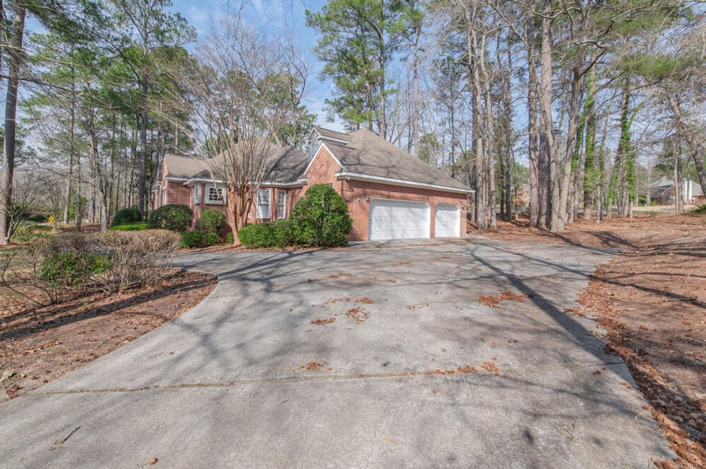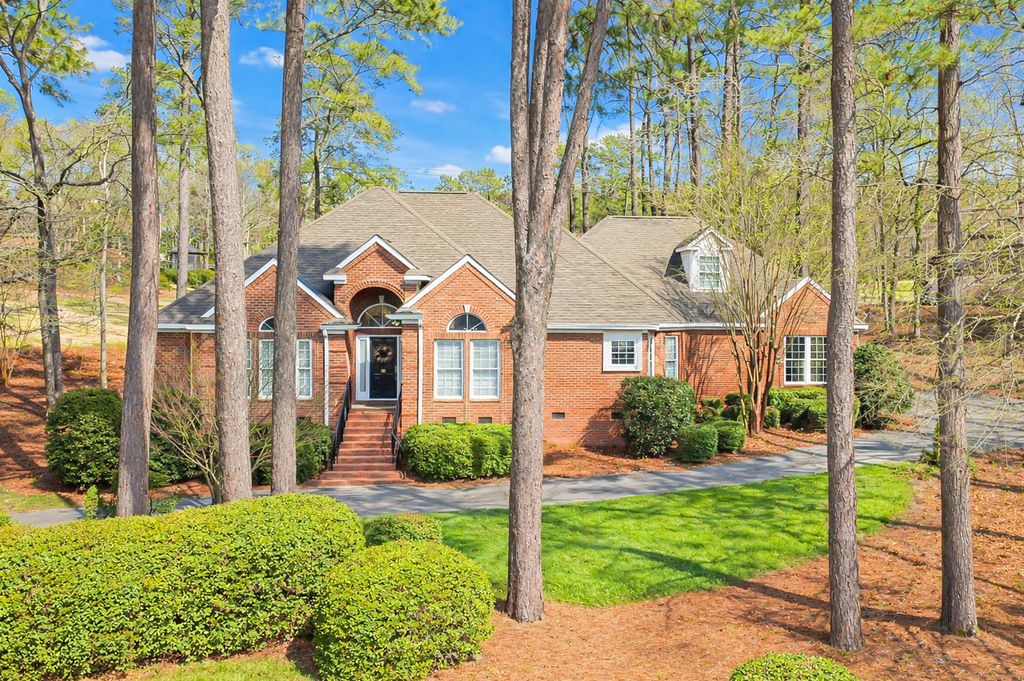 Located in highly sought after Woodside, this exceptional golf course home offers breathtaking views, elegant finishes, and thoughtful design on a beautifully landscaped 0.84-acre corner lot! With stunning curb appeal and a 3-car garage, this mostly one-level home is perfectly positioned to enjoy both comfort and style! A grand foyer welcomes you into the home, where hardwood floors flow throughout the main living areas! The living room features a cozy fireplace, ceiling fan, and abundant natural light, creating an inviting space for everyday living or entertaining! The formal dining room impresses with refined wainscoting and a beautiful chandelier, ideal for hosting memorable gatherings! The well-appointed kitchen boasts granite countertops, snack bar seating, dishwasher, refrigerator, oven, built-in microwave, glass top range, and abundant cabinet space! The adjacent breakfast area is highlighted by a charming bay window and a desk area adds to functionality! The spacious owner's suite is a true retreat, featuring a tray ceiling, ceiling fan, and a two-way fireplace that opens into the luxurious ensuite! The spa-like bath includes separate his-and-her vanities with granite countertops, beveled mirrors, a stunning chandelier, a separate tiled shower, and a soaking tub with tile and granite surround, plus a generous walk-in closet! Three additional bedrooms, all with ceiling fans, share a full bathroom with a double sink vanity and granite countertops! The flex room offers endless possibilities for a media room, home office, or bonus space and includes two ceiling fans! Additional features include a half bath with pedestal sink, a well-equipped laundry room with utility sink, extra cabinetry, and shelving! Step outside to the deck with built-in bench seating and enjoy breathtaking views of the golf course, surrounded by mature landscaping and serene outdoor beauty! Woodside offers swimming pool, tennis courts, golf course, and a variety of social club, 15 miles of walking trails, green spaces, and convenient proximity to shopping, restaurants, and downtown Aiken!