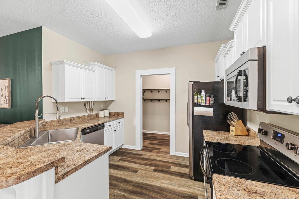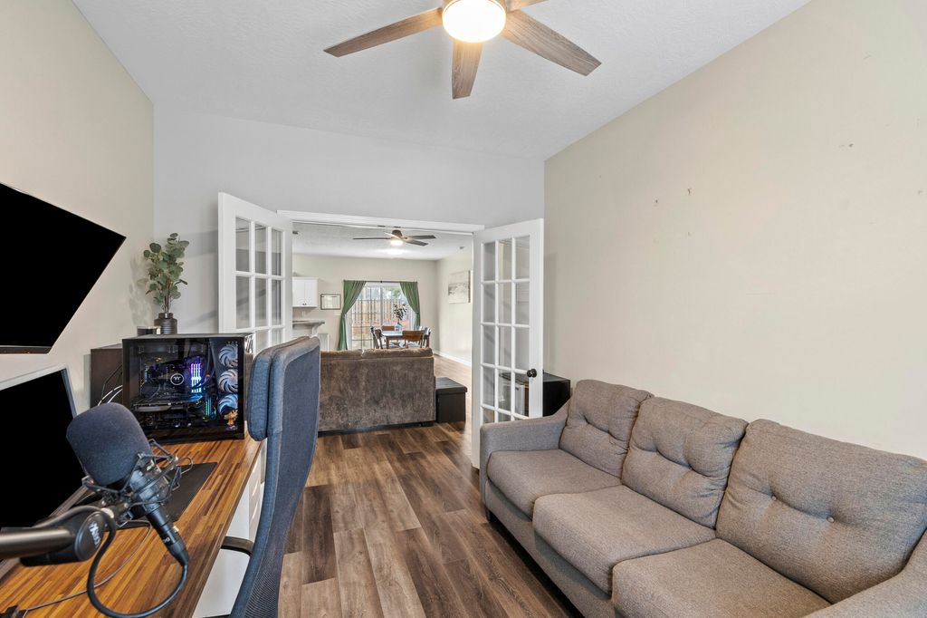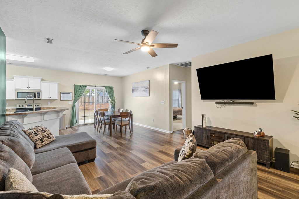 Welcome to 4911 Ashbrooke Way, a beautifully maintained 3-bedroom, 2-bath ranch-style home located in the desirable Ashbrooke subdivision of Grovetown, GA. Built in 2012, this inviting residence offers ~1,600 sq ft of thoughtfully designed living space on a quiet cul-de-sac lot with mature landscaping and a low-maintenance exterior. Step inside to an open floor plan highlighted by an expansive great room, adjacent dining area, and a well-appointed kitchen with ample cabinetry and counter space -- perfect for everyday living and entertaining. A versatile flex room with French doors provides space for a home office, formal dining, or play area, while large windows bring in abundant natural light. The primary suite features a walk-in closet and private bath with dual vanities, separate shower, and garden tub. Two additional bedrooms and a second full bath complete the layout. Recent updates include luxury vinyl plank flooring, newer carpet in the bedrooms, and fresh interior paint in modern tones. Additional highlights include a two-car attached garage, patio with sliding glass doors -- ideal for outdoor gatherings -- a sprinkler system, and a backyard playset (optional). The home is equipped with central heat and air, total electric efficiency, and is part of a low-cost HOA. Located near excellent Columbia County schools and convenient to I-20 and local amenities, this property combines comfort, style, and value in a sought-after community.