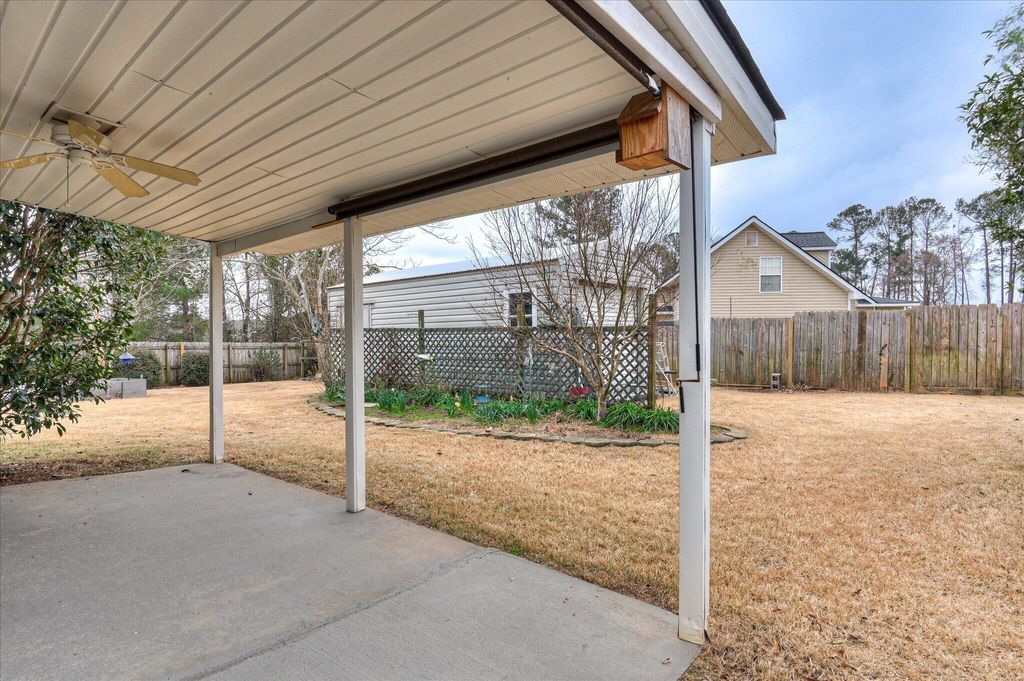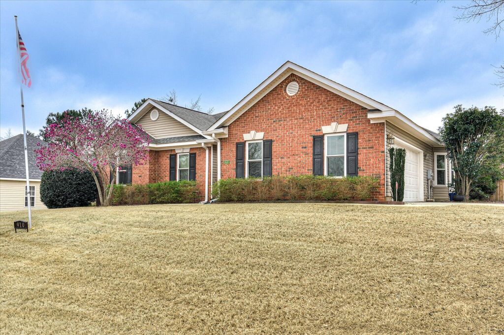 Exceptional brick and vinyl ranch home situated on a spacious third of an acre corner lot in Evans, GA! This 3 bedroom, 2 bath home offers 1,673 square feet and a desirable side-entry two-car garage. Inside, you'll find a welcoming great room with vaulted ceilings and a fireplace with electric log insert that creates a bright, open living space. The kitchen and dining areas flow easily for everyday living and entertaining. The current owners have taken excellent care of the home and enhanced the outdoor living space by adding a covered back porch--perfect for relaxing or enjoying the backyard year-round. The property also includes two outbuildings, one of which has power and is ideal for tools, hobbies, or workshop space. Located in a well-established Evans neighborhood and zoned for River Ridge Elementary, this home offers the convenience of nearby shopping, dining, and schools while enjoying the freedom of no HOA restrictions. A rare opportunity to own a meticulously maintained, one-owner home with great outdoor space and practical features!