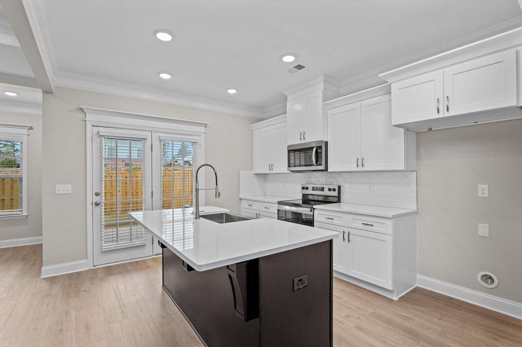 Introducing PlanDwell's luxurious Seabrook plan, a perfect blend of elegance and modern living. This stunning home offers 3 bedrooms, 2.5 baths, and a single-car garage, complete with fully landscaped yards and charming covered front and back porches. Step inside and experience the refined details, including heavy molding and exquisite trim around every window, along with crown molding in the kitchen, great room, and flex/dining room. Designer Evacore waterproof flooring flowing throughout the main living areas. The gourmet kitchen impresses with its open layout, quartz countertops, oversized island, designer backsplash, and stainless-steel appliances. Natural light pours into the spacious great room, creating an inviting atmosphere. This open plan is ideal for entertaining! Ascend the hardwood treads to the luxurious owner's suite, a personal retreat showcasing a large designer walk-in closet, an en-suite bath with a tile surround shower, double vanity with quartz countertops, framed mirrors, and ceramic tile flooring. Two additional serene bedrooms share a second full bath, also featuring ceramic tile flooring and quartz countertops. Each bedroom is outfitted with plush designer carpeting and an upgraded pad for extra comfort. This home is thoughtfully equipped with a pre-wired home package including Cat5 internet and cable wiring. Ideally located near major highways, shopping, dining, the medical district, and highly desirable Columbia County schools, this home offers both luxury and convenience. Call today for details and ask about additional savings with our preferred lender. Estimated date of completion April 2026.