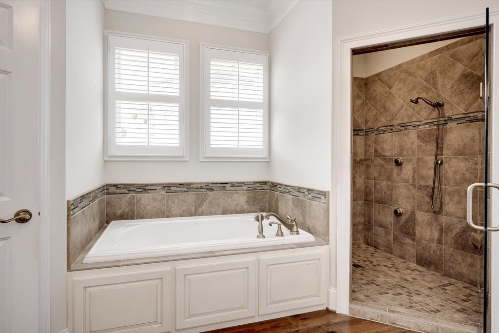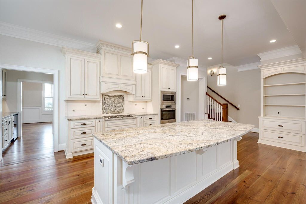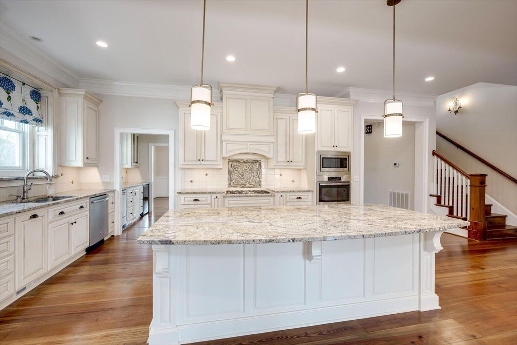 A rare find in the prestigious Hammonds Ferry community. This custom-built home, lovingly maintained by its original owner, offers timeless craftsmanship and thoughtful design throughout. Wide-plank hard pine floors, ten-foot ceilings, and heavy moldings set a warm, elegant tone from the moment you walk in. The main-level primary suite adds everyday convenience, while a formal dining room with coffered ceilings and covered front and back porches make this home equally suited for quiet evenings and entertaining guests. Upstairs, a bonus room offers flexible space for whatever you need. Three bedrooms, two and a half baths, and a two-car garage round out a practical and comfortable floor plan. Mature landscaping and a peaceful view of the Brick Ponds complete the picture. A well-built home in a sought-after neighborhood -- move-in ready and built to last.