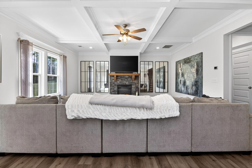 Better than new in Evans! This spacious two-story home offers nearly 3,500 square feet with 6 bedrooms, 4 full baths, and a rare three-car garage in the highly desirable Whispering Pines community--located in the top-rated Columbia County school district. A charming rocking-chair front porch welcomes you into a bright, open floor plan designed for both everyday living and entertaining. The main living area flows seamlessly between the family room, dining space, and kitchen, creating a true open-concept feel. The kitchen features granite countertops, a large walk-in pantry, and a breakfast area overlooking the main living space. The main level includes a private in-law suite with a full bath, currently used as a home office--ideal for guests or multi-generational living. Upstairs you'll find spacious secondary bedrooms, a convenient Jack-and-Jill bath, and an upstairs laundry room. Enjoy outdoor living on the covered back porch with a wood-burning fireplace, perfect for relaxing evenings or hosting friends and family. The three-car garage provides excellent space for vehicles, storage, or hobbies. Whispering Pines offers outstanding neighborhood amenities including a 3.5-acre park, walking trails, sidewalks, street trees, playground, fire pit, and community pool. Homes with this much space, a three-car garage, and access to Columbia County's top-rated schools rarely become available in this location.